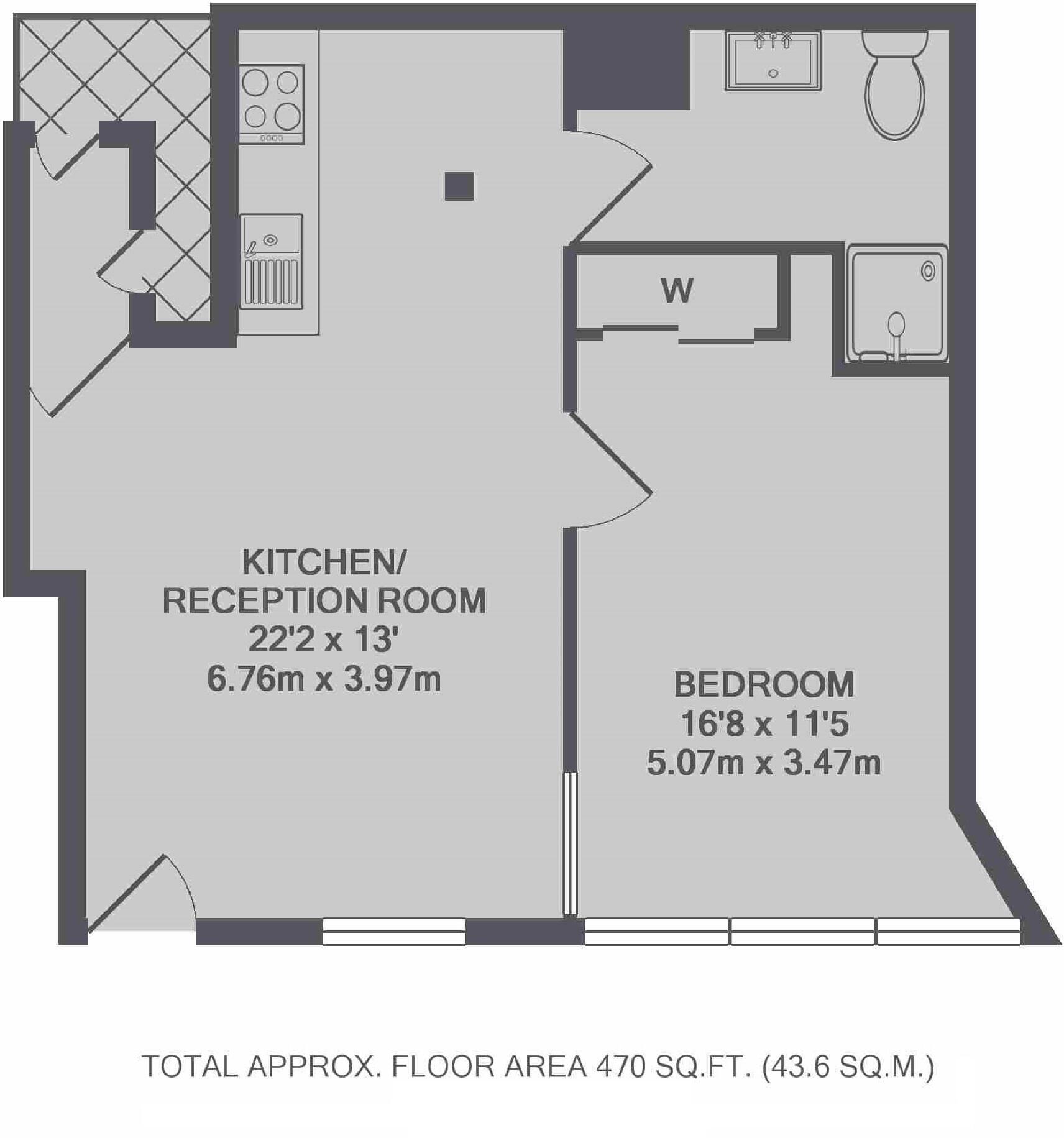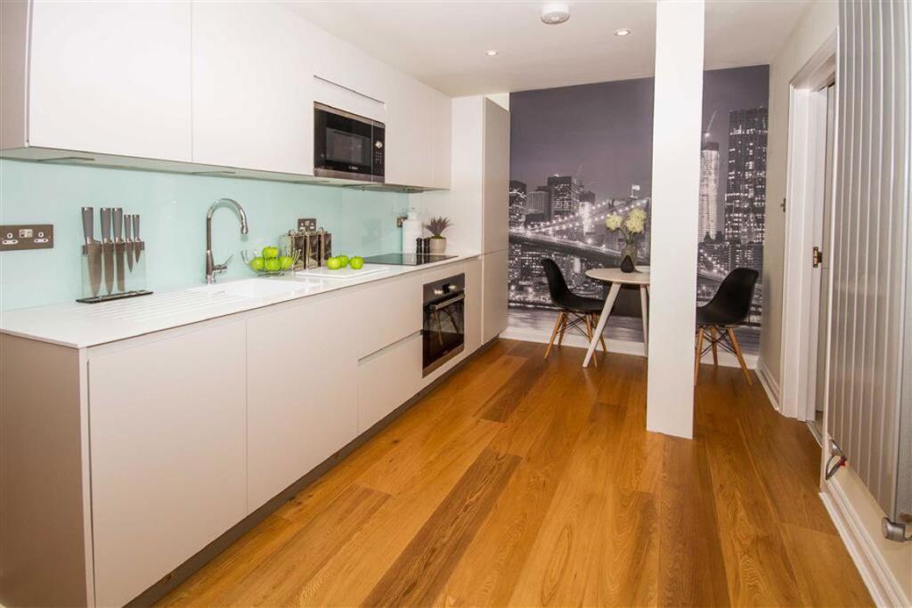 A ground floor warehouse style conversion that has been refurbished throughout and has a double bedroom, large living area with space for dining, a modern kitchen and bathroom.
