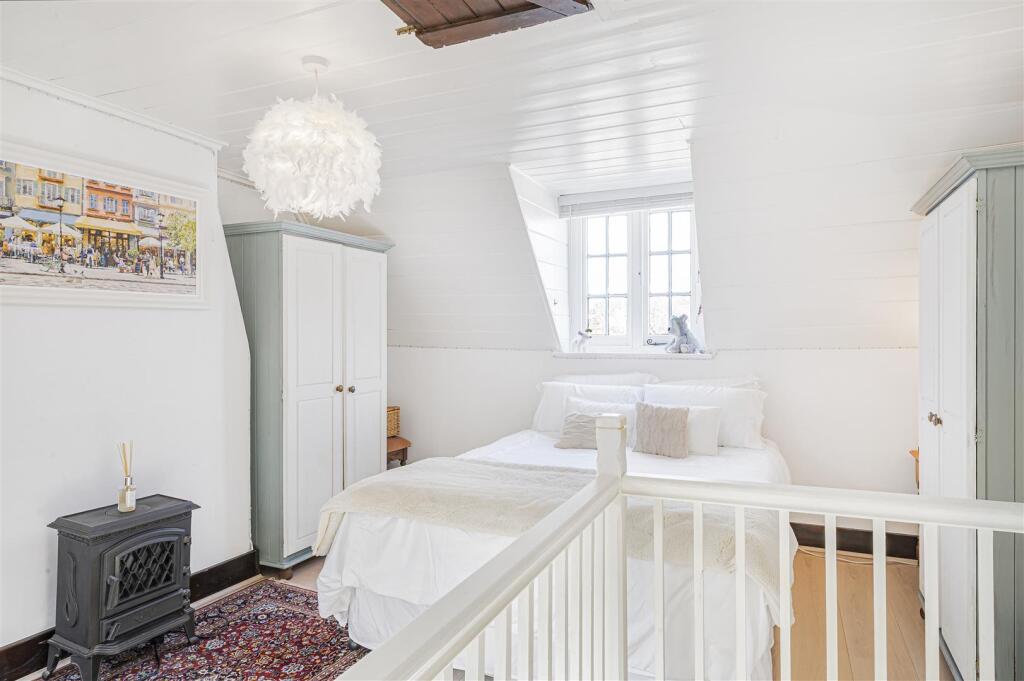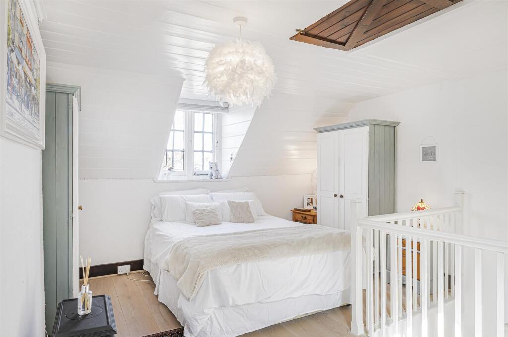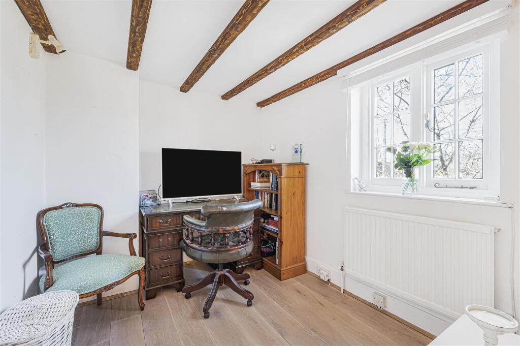 The property appears to be in good condition based on the provided photographs. The interior is well-maintained and recently decorated, with modern fixtures and fittings in the kitchen and bathroom. The exterior also appears to be in good condition, with a well-maintained garden. The exposed beams and character features add to the charm.