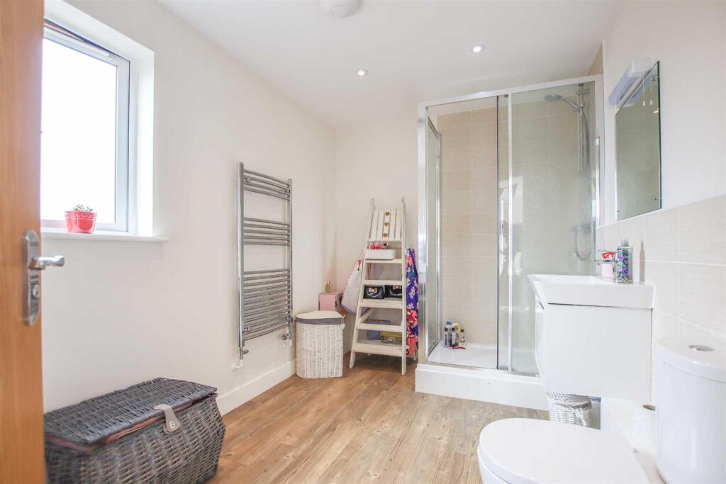 This is a modern two-bedroom, two-bathroom apartment located in Hertford Castle. The property is in good condition and benefits from its proximity to Hertford East station and local schools. While it lacks a garden, it does have a balcony. The price appears to be in line with the local market, although the square footage is relatively small.