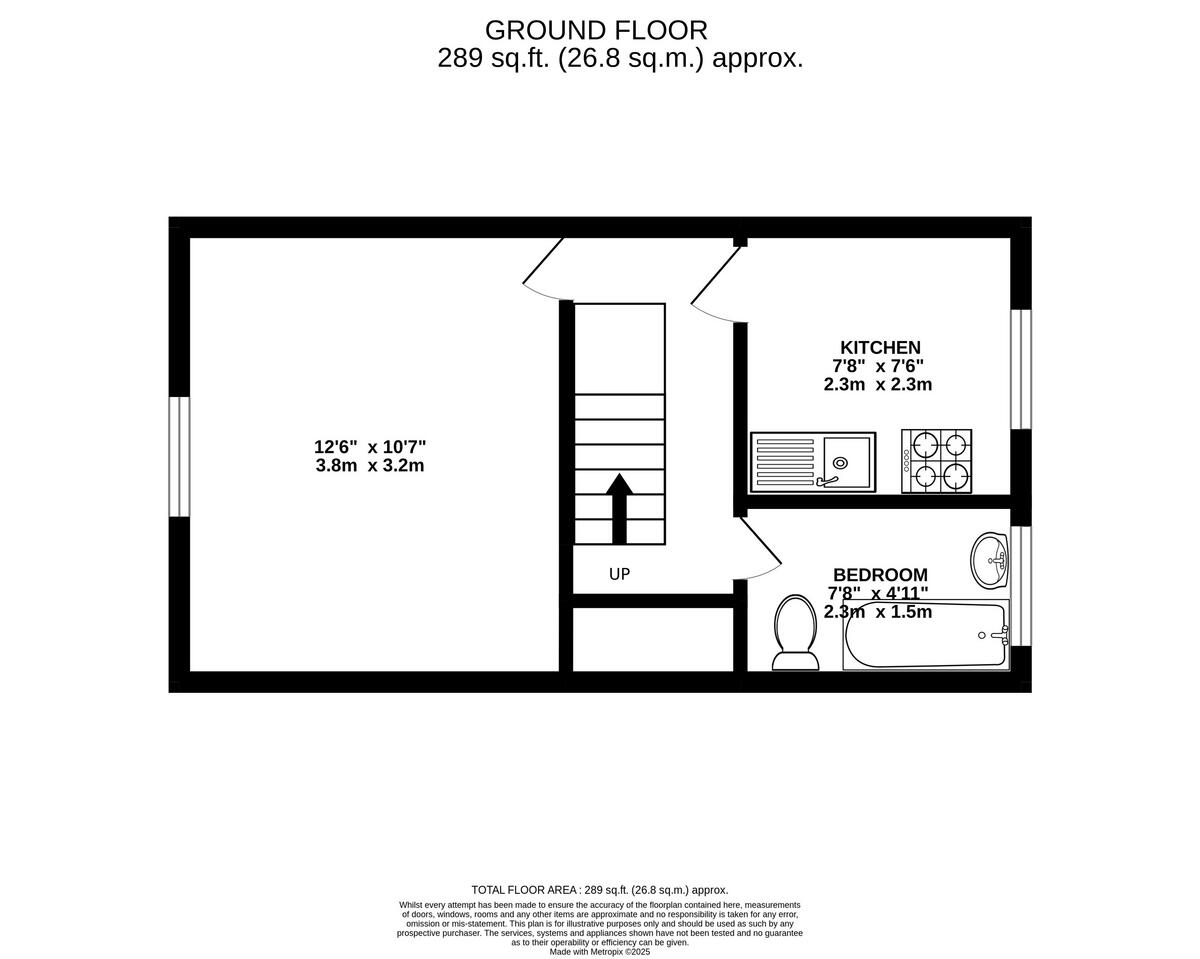 The property’s plot size is relatively small, at 289 square feet, and it does not appear to have a garden based on the external photograph. This limits outdoor space.