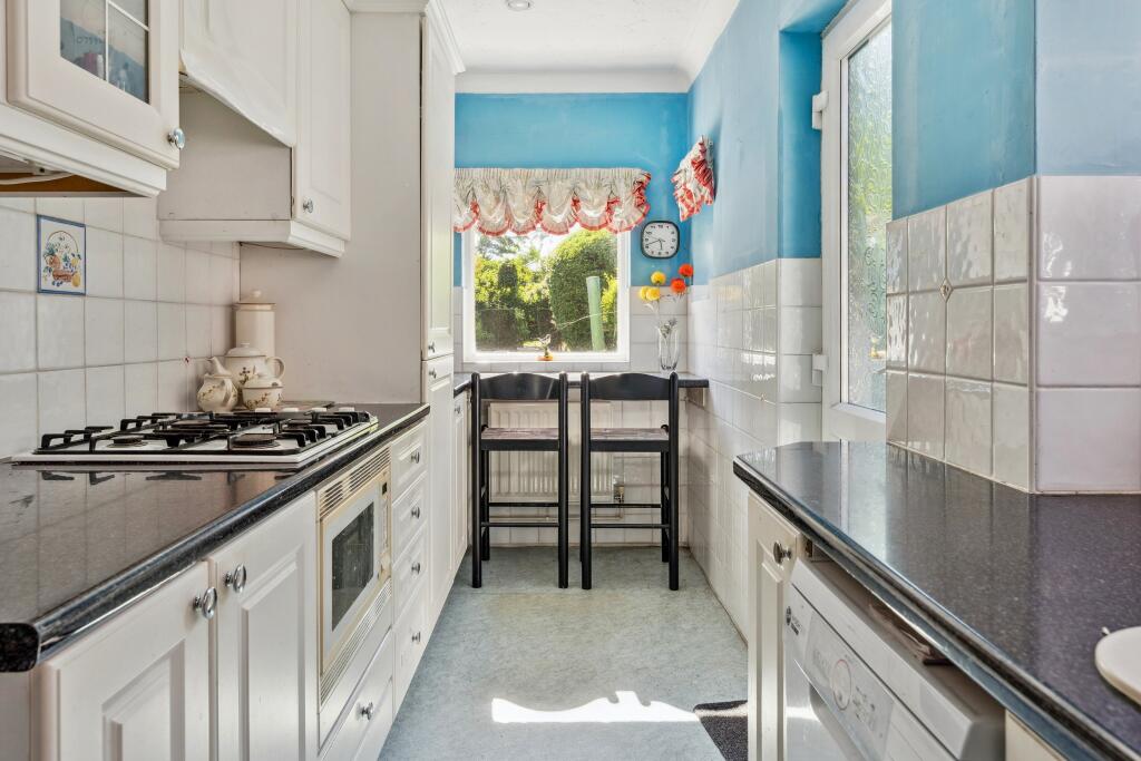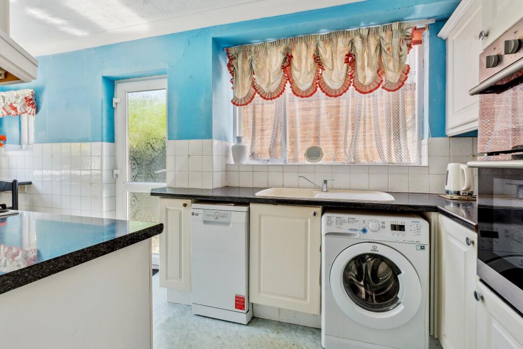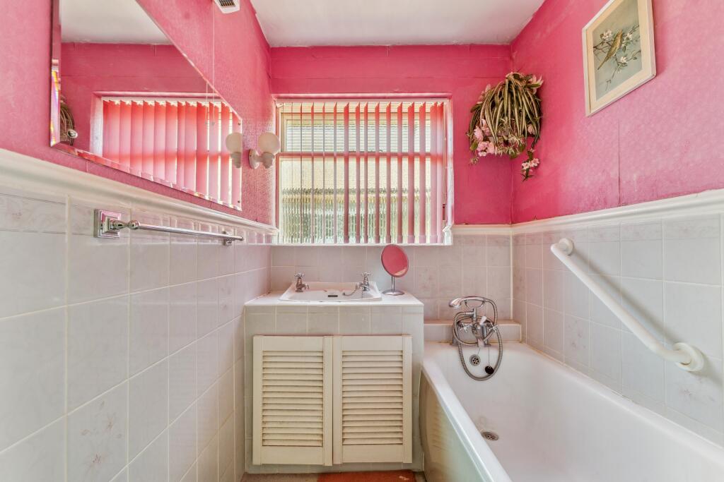 Based on the provided images, the property appears to be in need of some modernisation. The décor and fixtures in several rooms, particularly the bathroom and bedrooms, show their age and would likely benefit from updating. The kitchen, while functional, also shows signs of age. The property is a semi-detached house with a garden, which is a desirable feature in the area. The garden appears to be of a decent size, offering space for outdoor activities.
