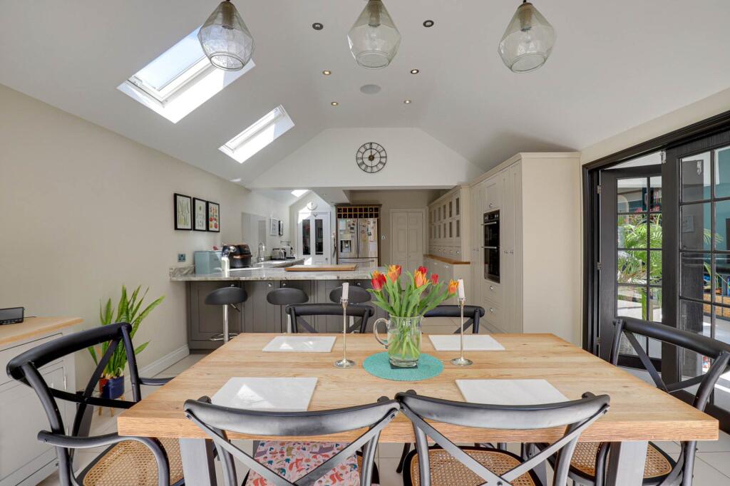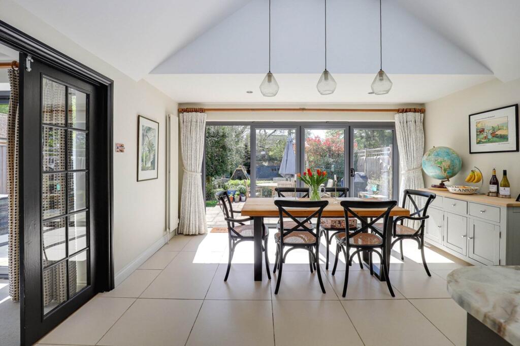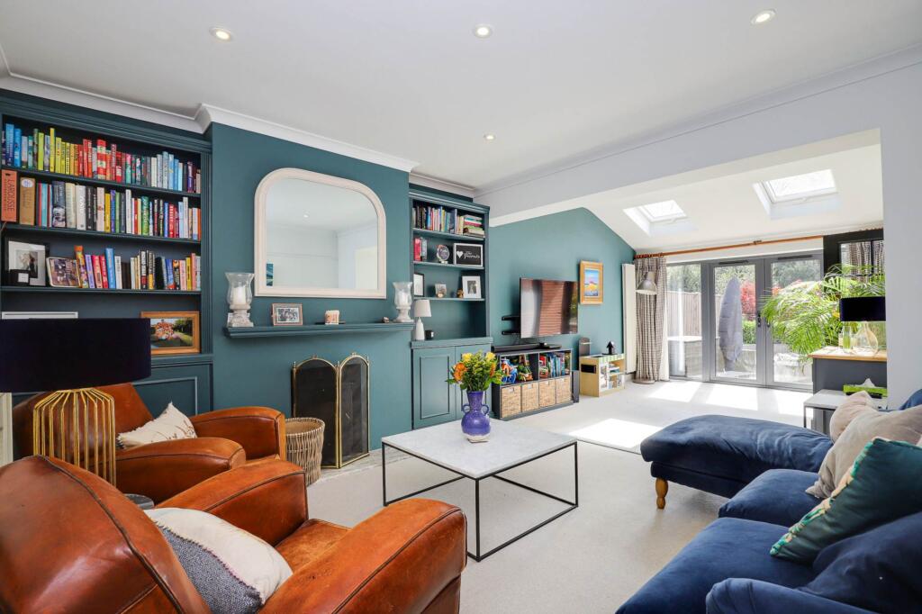 New to the market is this vastly extended 1930s semi detached house set in a quiet cul de sac in the heart of Emmer Green and presented in immaculate decorative order throughout. Accessed via an open porch the generous hallway leads to a front room with open fireplace and large bay window.