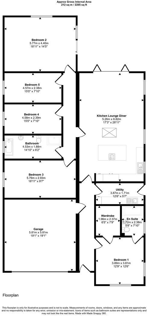This is a modern, detached bungalow in Roch, Pembrokeshire. The property features four bedrooms, two bathrooms, a modern kitchen, and a well-maintained garden. The house appears to be in excellent condition, suggesting recent renovation or construction. The location offers a rural setting with access to local amenities. The price seems high for the area, but the modern design and quality finishes may justify the premium.