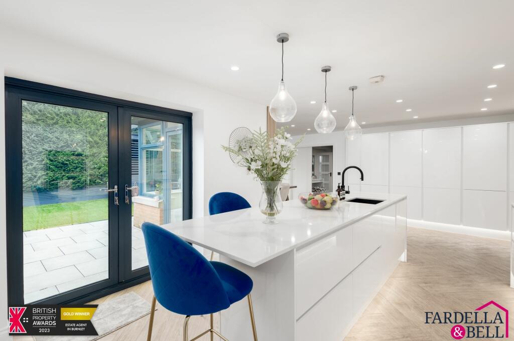 This five-bedroom, five-bathroom detached property in Cliviger With Worsthorne, Burnley, is presented in truly excellent condition. The photos showcase a recent, high-quality refurbishment, featuring modern kitchen and bathrooms, stylish decor, and what looks to be a large, well-maintained garden. The inclusion of a separate annex adds significant value and living space. The location is described as desirable, supported by its closeness to a ‘Good’-rated primary school. However, more detailed information on the plot size, surrounding neighborhood, and price per sqft would assist in a fuller valuation. Train stations are about 5 km away. The absence of this detail leaves an uncertainity about how much the location truly impacts the value. While the property displays high-quality renovations, the list price, given the data, may be at the high end of the market value for the area, although the lack of price per sqft for properties in the area makes it difficult to objectively assess this assertion. Overall, it is a very attractive property in apparent good condition and a sought-after location, although some key details would allow for a more concise evaluation and price estimate.