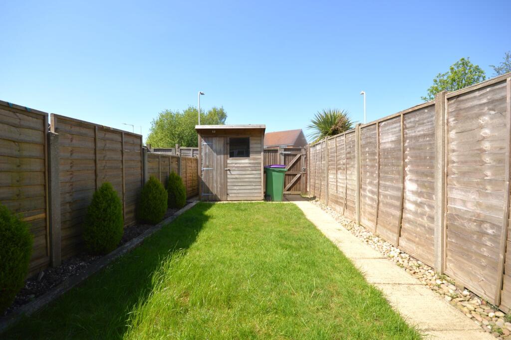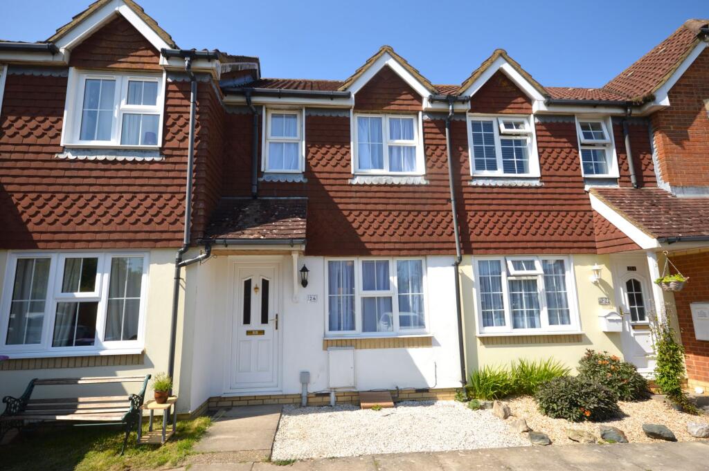 Charming mid-terraced house in Hawkinge, suitable for first-time buyers/investors. 2 bedrooms, guide price £250-260K, chain-free sale, patio area, garden, shed, allocated parking, EPC 'C'.