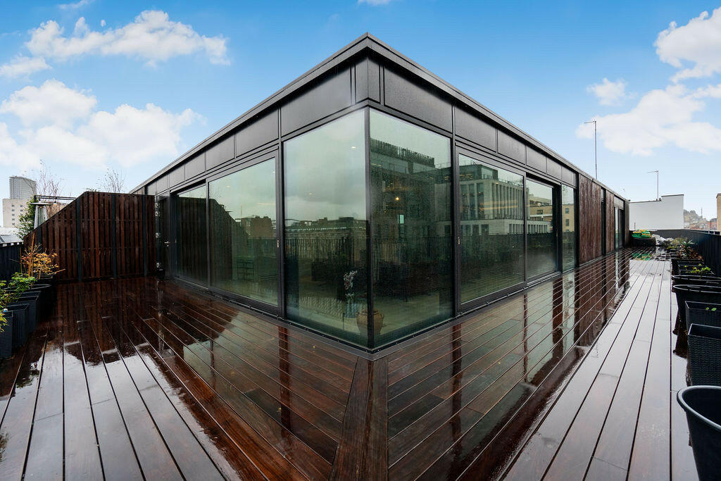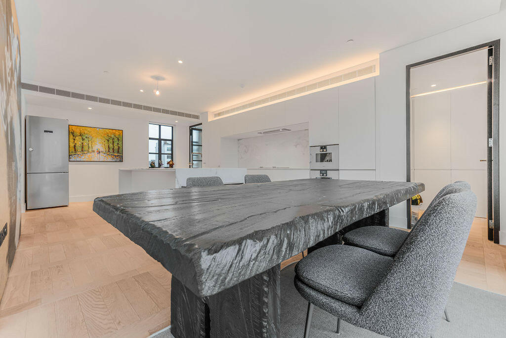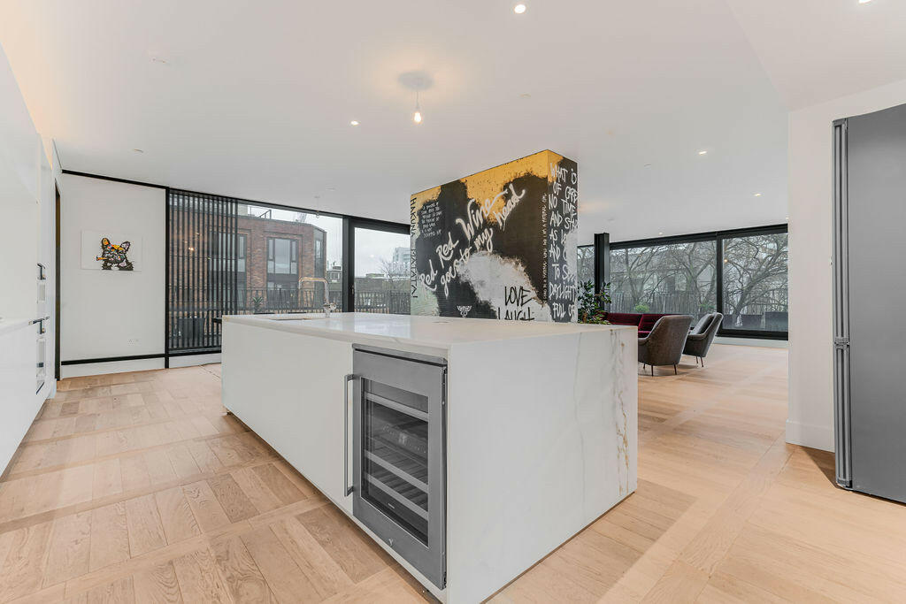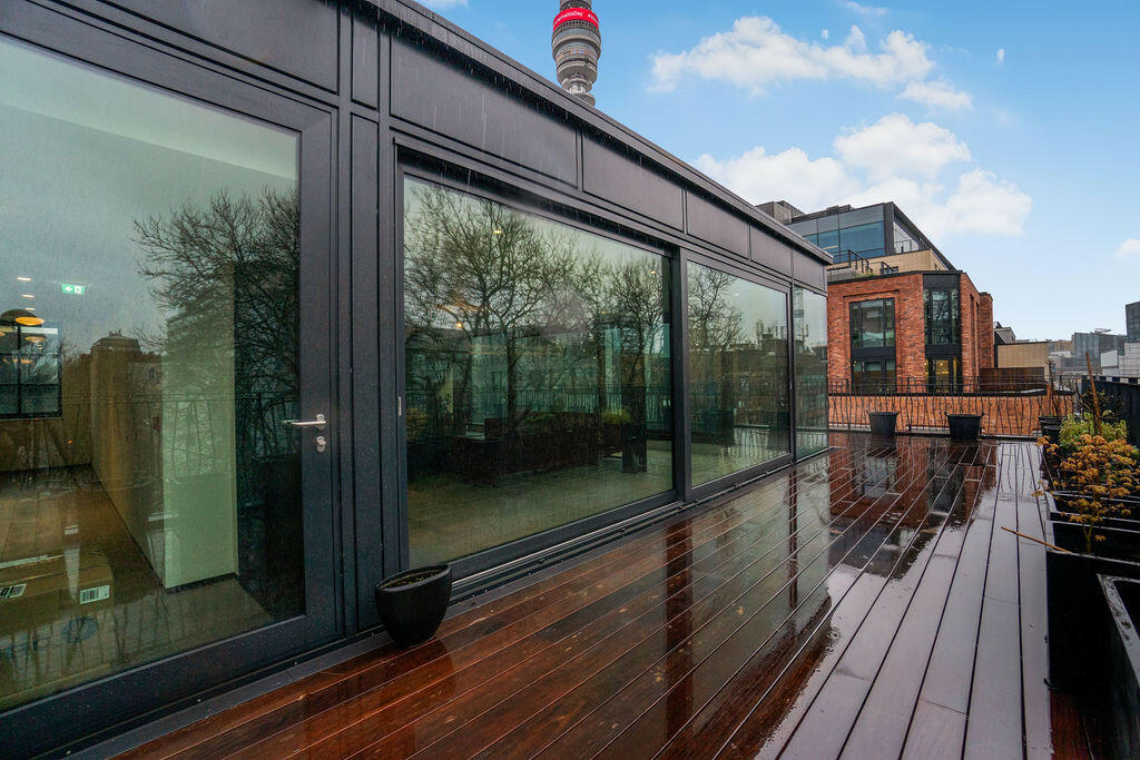 New York style luxury living in this stunning penthouse apartment (measuring over 2000sqft / 200sqm) in the iconic West End of London, Fitzrovia. This three-bedroom, three-bathroom residence features wooden flooring, a wrap-around balcony, and a high specification interior.