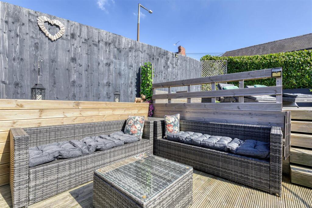 Land: The property boasts a substantial plot size of 910.18 sqft, including a well-maintained garden with patio areas and decking. The garden is tiered and offers various seating areas, suggesting ample outdoor space for relaxation and entertaining.