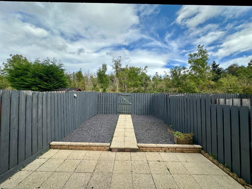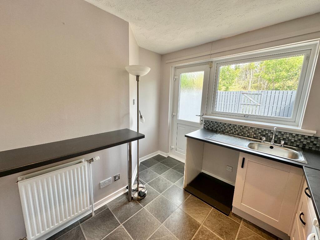 Modern two-bedroom unfurnished mid-terrace house in Darnley with a private driveway and garden.