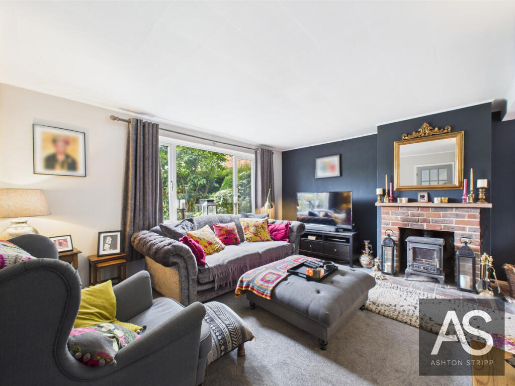 Well-presented 3-bedroom home on a private corner plot. Features a bright living room with garden doors and log burner, modern navy kitchen, utility room, smart bathroom, mature gardens, driveway parking, and footpath access just a short walk to Battle Woods