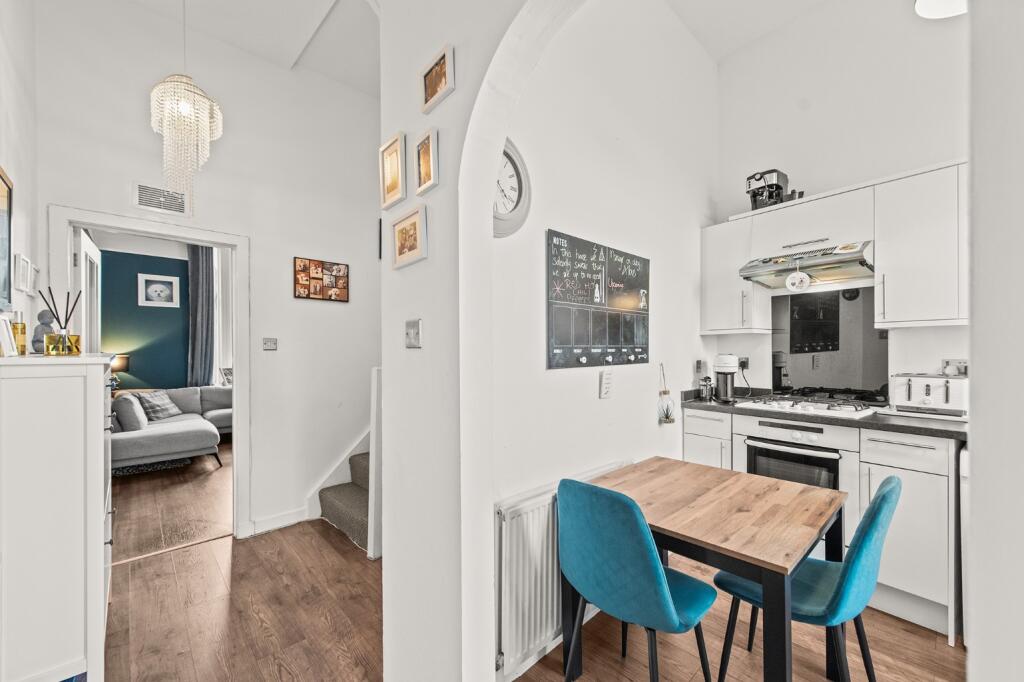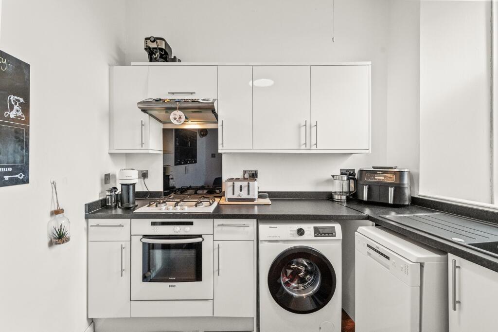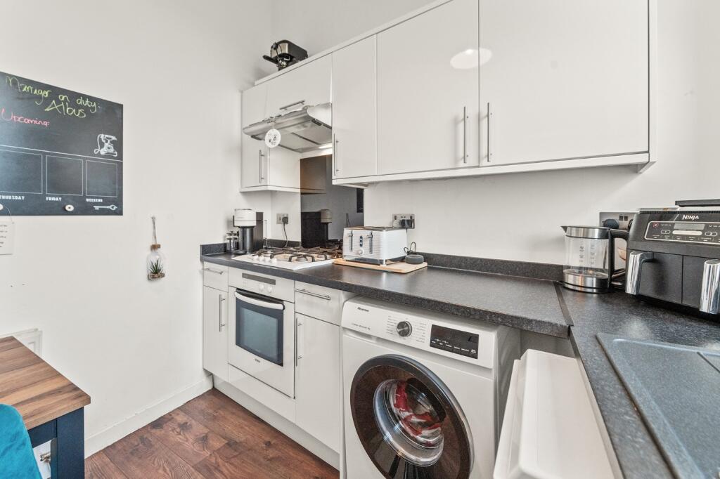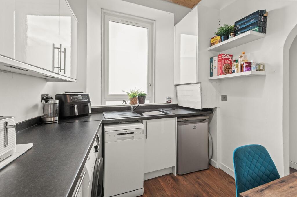This is a one-bedroom flat located on Main Street in Stenhousemuir, Larbert. The property appears to be in good condition internally, with a modern kitchen and bathroom. While the external appearance shows some wear, the interior is well-maintained. The flat is situated in a convenient location with access to transportation and local amenities. The asking price of £89,995 represents good value, being significantly below the average property price in the area. The flat would suit a first-time buyer or investor. The property benefits from its proximity to Larbert train station and local schools, enhancing its appeal.