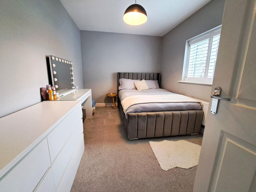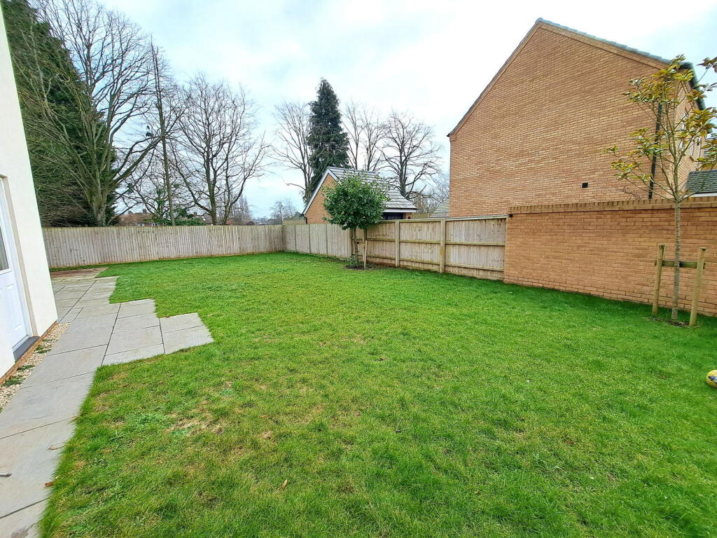 The property includes a garden, as shown in the provided images. While the exact size isn’t specified, it appears to be a reasonably sized garden for a property of this type. The presence of a patio area suggests an outdoor space suitable for relaxation and entertaining.