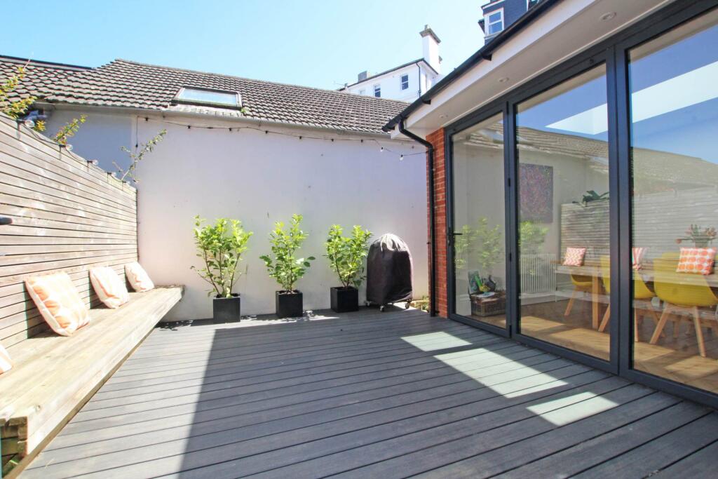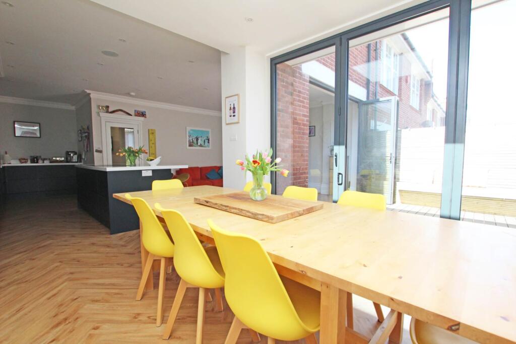 This is a spacious semi-detached property located in the sought-after Meads area of Eastbourne. The house boasts six bedrooms and three bathrooms, making it suitable for a large family. The property is in good condition, with a modern kitchen and bathrooms. The outdoor space is a decked patio, offering a low-maintenance area for outdoor living. The location is ideal, with proximity to good schools, the coast, and local amenities. The price appears to be competitive compared to other properties in the area, making it an attractive opportunity.