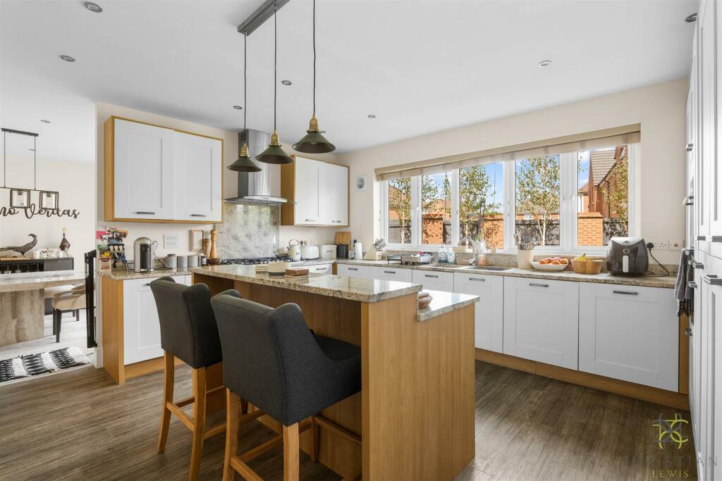 This exceptional, chain-free detached home offers four spacious double bedrooms, three bathrooms, and a generous layout perfect for executive living. Built in 2017, the property boasts upgraded features, three reception rooms, a stunning kitchen/breakfast room, and retains the remainder of its NH...