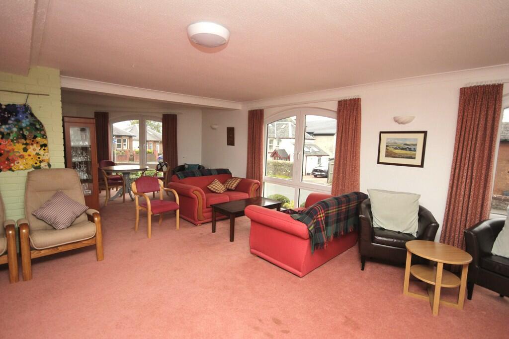 1ST FLOOR RETIREMENT FLAT CLOSE TO LARGS TOWN CENTRE. Lounge overlooking the communal gardens and also access to the galleykitchen to the side,double bedroom & refitted shower room.Secure entry, large residents lounge, guest room, lift, parking and resident gardens. Warden service.