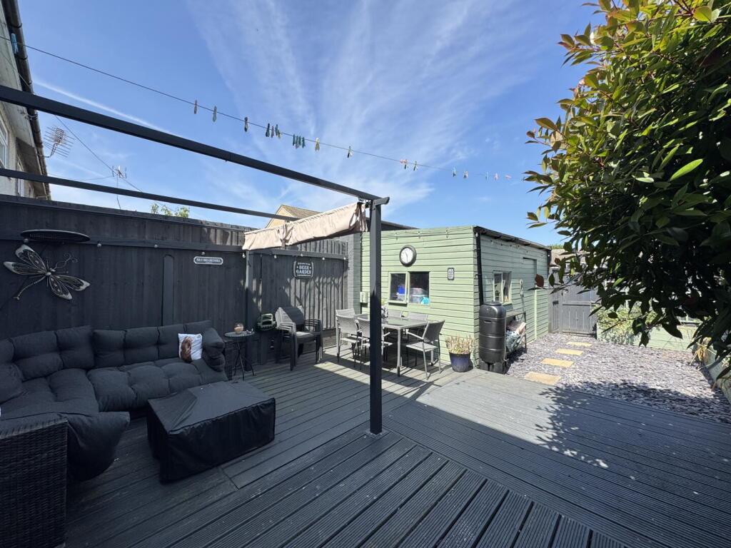This three-bedroom, two-bathroom terraced house in Corringham, Essex is listed at £315,000. The property benefits from a modern kitchen and a good-sized rear garden with a decked area and shed. The location is convenient, with nearby primary schools receiving good Ofsted ratings and several c2c train stations within a reasonable distance. While the property appears to be in good condition based on the provided images, the lack of plot size data in the listing prevents a full assessment of the land value. Compared to the average price per square foot in the area (£322), the listed price seems slightly below average, considering the property’s apparent condition and features. However, more information on the plot size would be needed to provide a more conclusive price analysis.