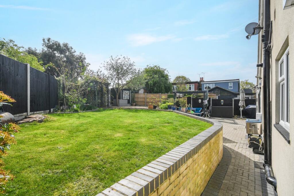 This property is a 3-bedroom chalet bungalow located on Abbey Road in Billericay, Essex. The list price is £625,000, and the property has 1184.03 sqft of internal floor area. The property benefits from a good-sized garden with a patio area, shed, and raised vegetable beds. The interior appears to be well-maintained and recently updated, with a modern kitchen and bathrooms. The location is within easy reach of several highly-rated schools including Quilters Infant and Junior Schools (both rated Outstanding by Ofsted) and The Billericay School (rated Good). Billericay train station is also relatively close, providing good transport links.