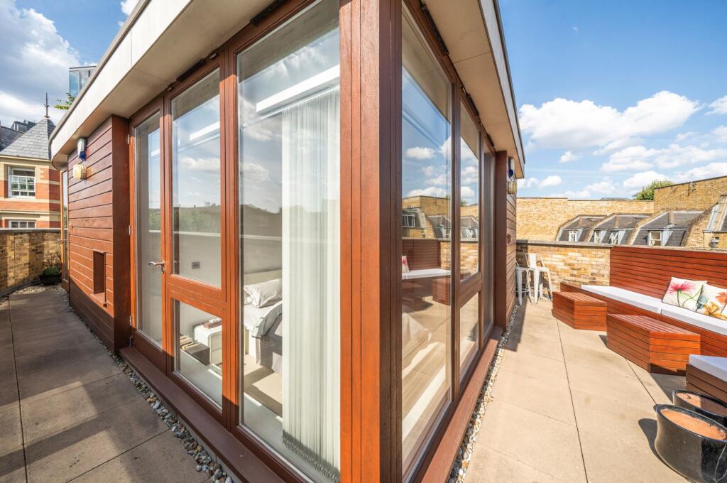 A spacious penthouse style one bedroom apartment with a light and bright interior with extensive private south and west facing roof terrace quietly located in a small side street leading from Tower Bridge Road