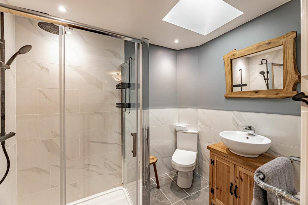 This property presents a unique opportunity in the Cheshire countryside. The detached bungalow is situated on an expansive 10+ acre plot in the village of Crowton, providing a significant amount of land suitable for various purposes like equestrian activities or simply enjoying a large amount of private outdoor space. The property itself shows evidence of a high-quality, recent renovation, featuring a blend of modern amenities and rustic charm. Interior images highlight a contemporary kitchen and bathrooms, along with living spaces characterized by exposed beams and a wood-burning stove. The rural setting provides peace and quiet, with nearby access to Crowton Christ Church Cofe Primary School (rated ‘Good’ by Ofsted). Several other schools are located within a reasonable driving distance. Although a few kilometers away, the relatively close proximity to several train stations provides links to further afield regions. Whilst accurate square footage information is lacking to make more exact comparisons, at £900,000, the price reflects the property’s significant land holdings. Potential buyers will need to consider the commute to larger towns and cities, but for those seeking a substantial property in a tranquil location, the property makes a compelling proposition.
