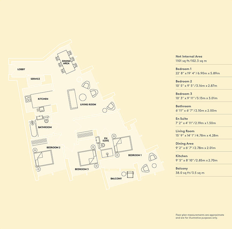 A modern and extremely spacious, three-bedroom, two-bathroom apartment at No.3 Upper Riverside, Greenwich Peninsula. Complete with access to residents' swimming pool, gyms, roof terraces, media rooms and 24-hour concierge.