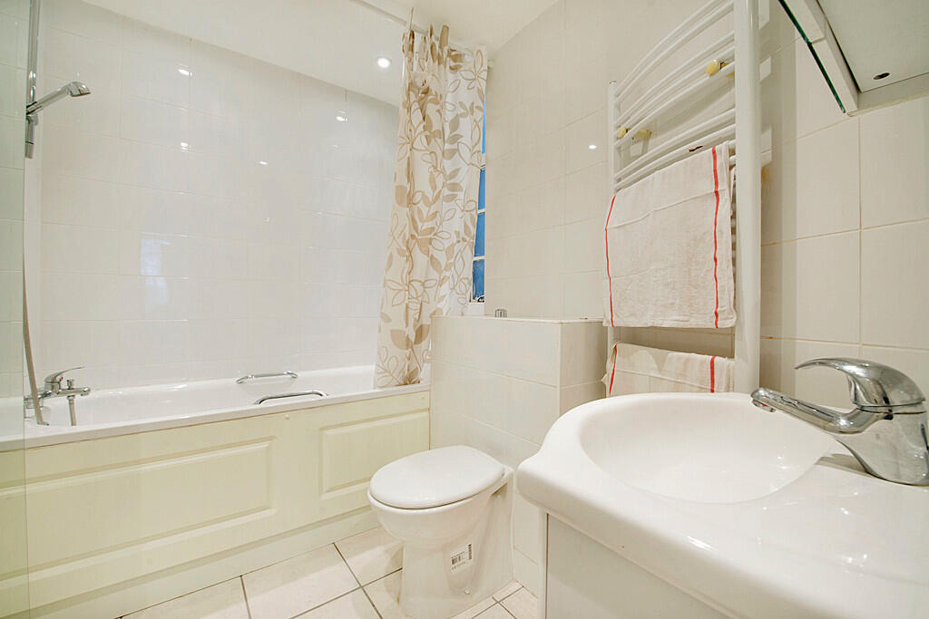 A bright, modern 2 bed (1 double, 1 single), 2 bathroom flat on the 5th floor (with lift) of Peters Court, a well maintained 1930s portered block on Porchester Road. Completely refurbished 4 years ago. The heating and hot water are included in the rent. Leasehold