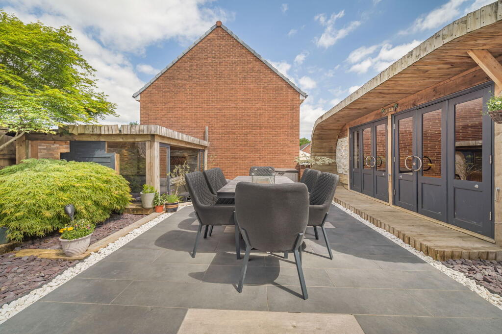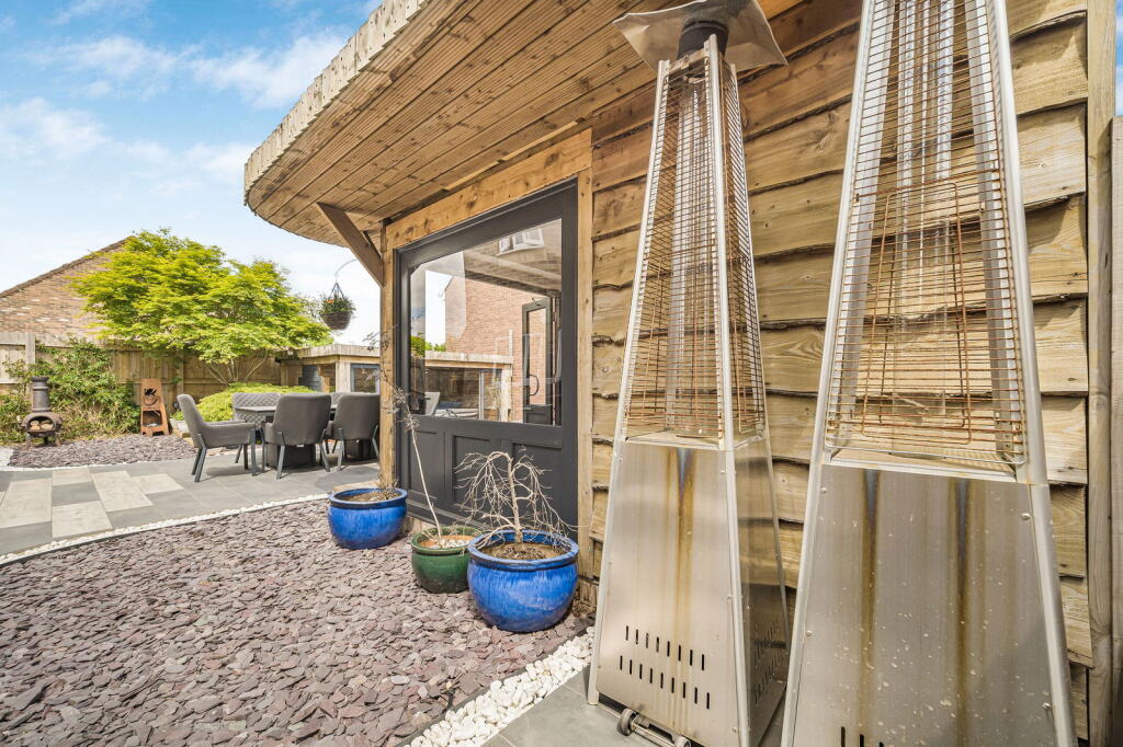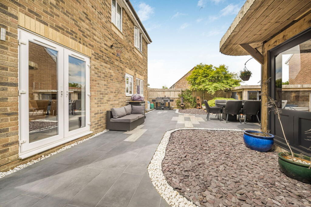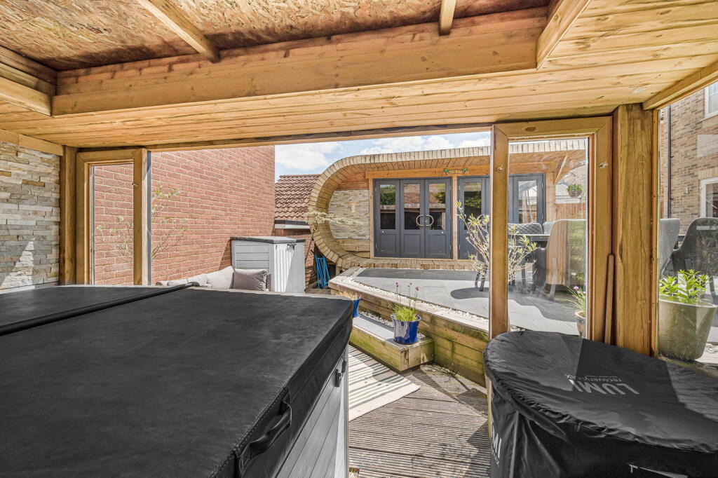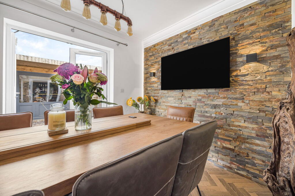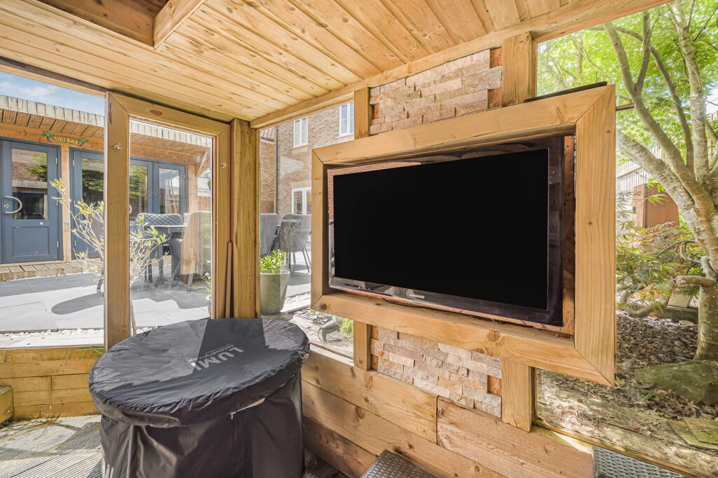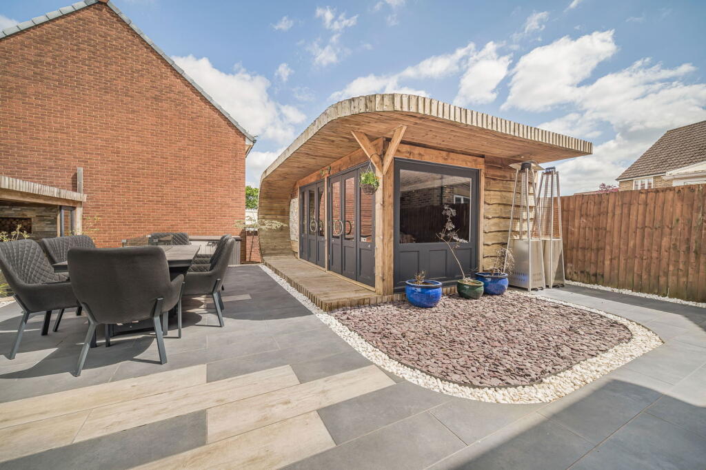 The property is a detached house located in Clos Coed Bach, Blackwood, Caerphilly, South Wales. Based on the provided images, the property appears to be in excellent condition, having undergone recent modernisation and refurbishment. The interior is contemporary and well-presented, featuring a modern kitchen, updated bathrooms, and stylish décor. The property benefits from a well-maintained garden with a substantial outdoor entertaining area including a hot tub and covered seating area. The location is within a residential area of Blackwood. The proximity to Blackwood Primary School and Blackwood Comprehensive School is a positive aspect for families. Several train stations are within a reasonable distance, offering convenient access to public transportation. However, without specific details on local amenities and their proximity to the property, a more detailed assessment of the location score is difficult. The lack of square footage information prevents a precise price per square foot calculation and comparison with local averages. However, considering the property’s apparent excellent condition, modern finishes, and substantial garden, the list price of £370,000 appears to be in line with or potentially slightly above the average price for similar properties in the area, but without plot size and sqft data this is difficult to confirm. Further comparative analysis of similar properties with available sqft data would be beneficial to fully assess the value. The property includes a well-landscaped garden with a patio, hot tub, and a substantial garden building. This suggests a high land score.