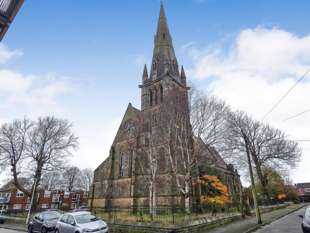 The property is a block of apartments located in a converted church in Preston, Lancashire. It is being marketed by Knight Frank Auctions. The building appears to be a period property and is in need of significant renovation. The location is reasonably accessible, with several schools and transport links nearby. The asking price is £100,000. The property offers a unique opportunity for development, but prospective buyers should be aware of the likely costs involved in bringing the building up to a habitable standard.