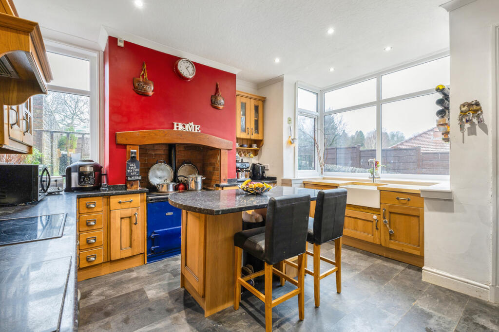 This is a 4-bedroom terraced property on Buxton Road, Stockport. The location offers good access to schools and transport links. However, the property appears to be in need of renovation and modernisation. The kitchen and bathrooms are dated, and there are signs of potential damp. The lack of information on the property’s square footage makes it difficult to assess the asking price of £500,000 accurately, especially when compared to the local average.