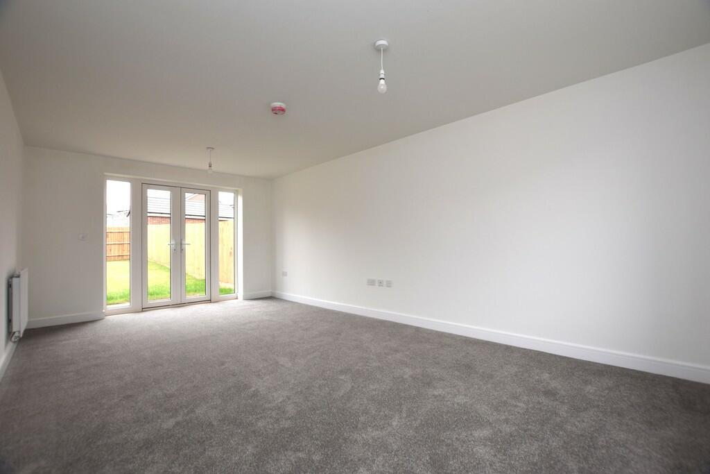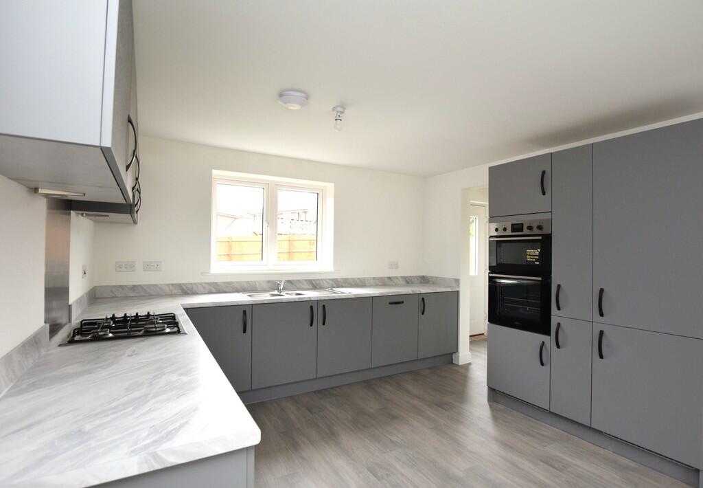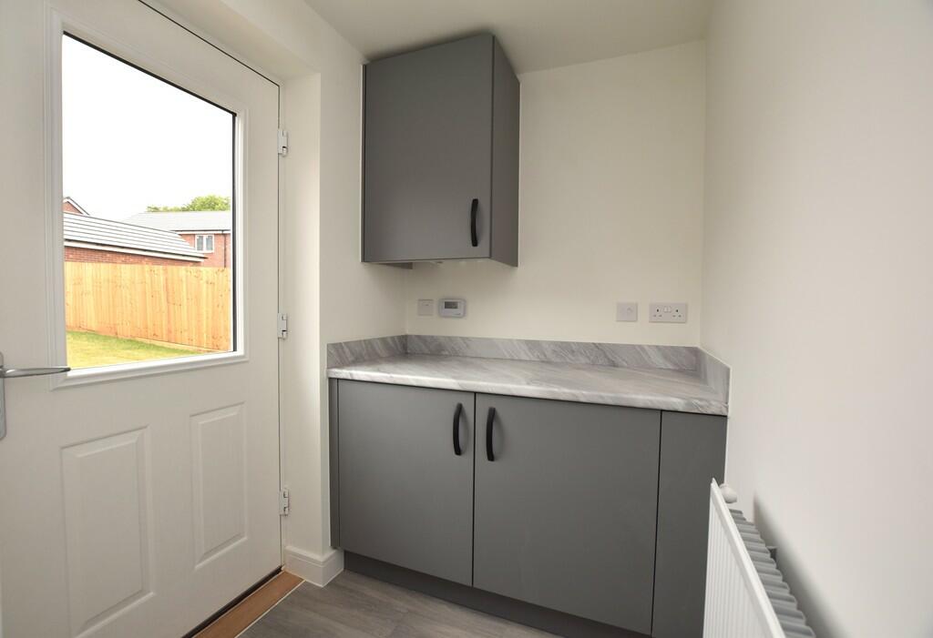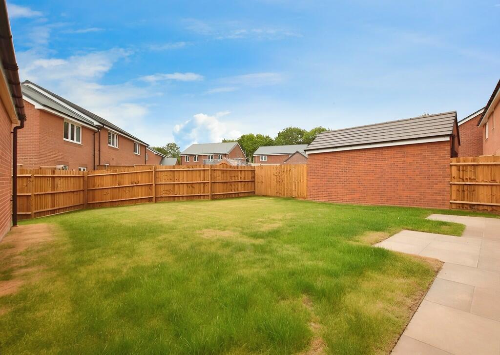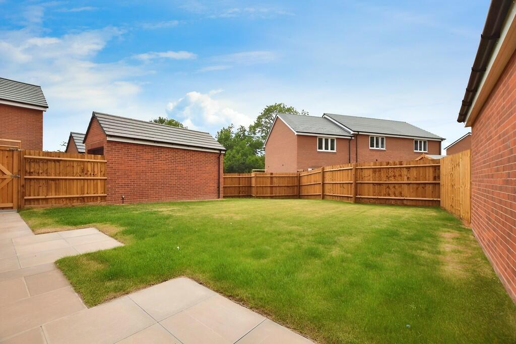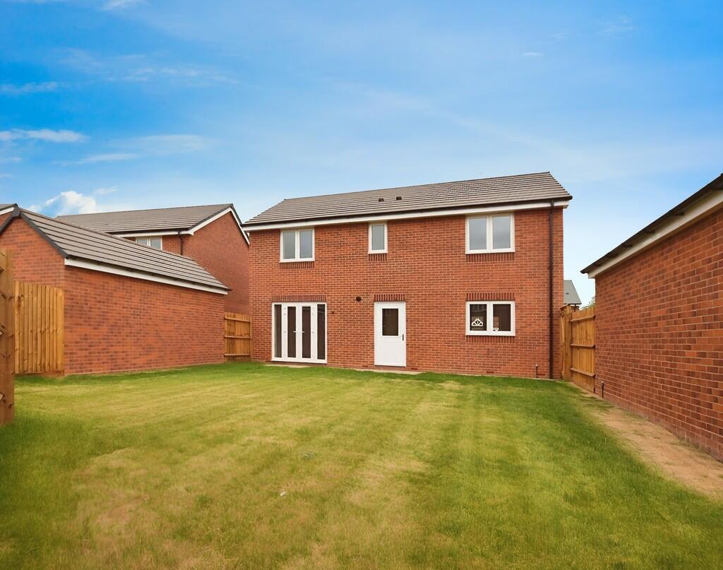 This four-bedroom detached house is located in Galley Common, Nuneaton, on a new build Taylor Wimpey development. The property is presented in seemingly excellent condition; the interior appears new or very recently renovated, featuring modern kitchens and bathrooms, and neutral decor. The exterior is similarly pristine, showing a well-maintained brick exterior. The property boasts a rear garden of a typical size for such a home in a modern residential setting, alongside a separate brick-built structure that is presumably a shed or similar. While the provided information lacks square footage details, preventing a precise price per square foot assessment, the list price seems consistent with other comparable four-bedroom detached houses in the immediate area and is probably at the higher end of expectations for the location and house size given the lack of complete information. The location has a positive influence with several good primary schools close by, though transport links to more significant commuting destinations rely on a short car journey to reach train stations.