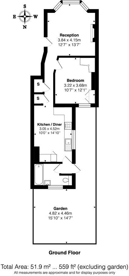This one bedroom apartment is located on Ilbert Street, Queen’s Park, London. The property benefits from a good location with nearby transportation links and well-regarded schools. The apartment itself appears to be well-maintained and recently updated, with a modern kitchen and bathroom. The inclusion of a private garden is a desirable feature. While the square footage is relatively small, the list price seems reasonable in comparison to similar properties in the area. The average price per square foot in the area is £534, and this property is listed at a slightly lower price per square foot, which may reflect the smaller size.