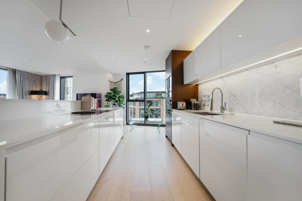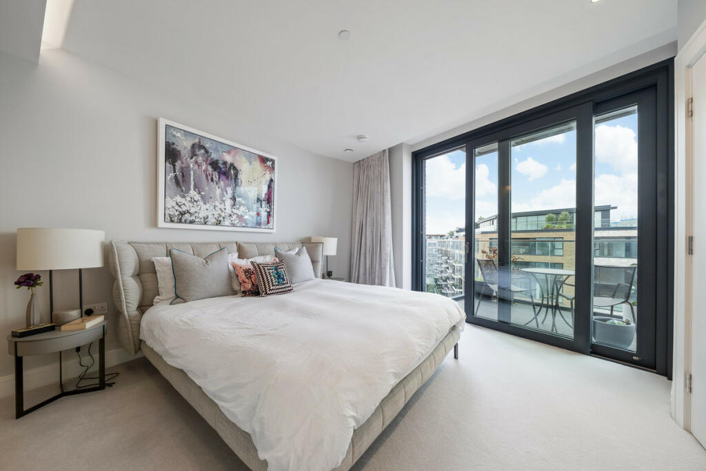 This large three-bedroom apartment in Lighterman Towers, Chelsea Harbour, offers an elegant blend of luxury and comfort, ideal for sophisticated city living in a sought-after riverfront location