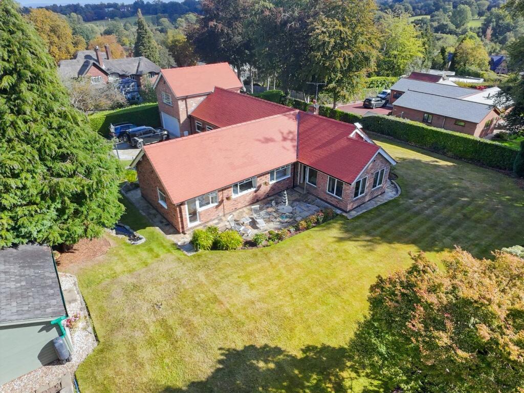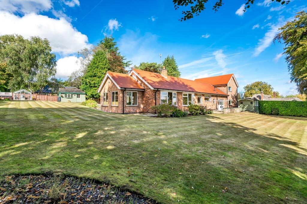 Detached bungalow in a prime Prestbury setting set in just under half an acre of gardens. Versatile accommodation extending to 2914 sq. ft., five bedrooms, spacious reception rooms, double garage and workshop and scope to create a truly individual home.