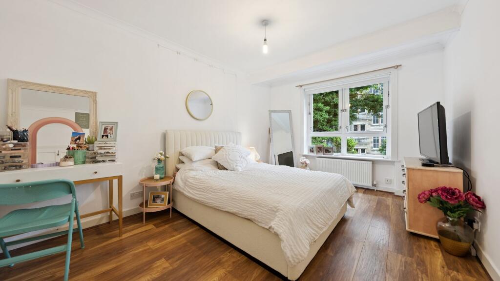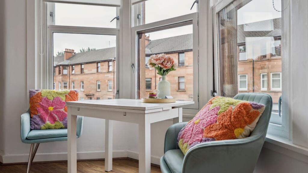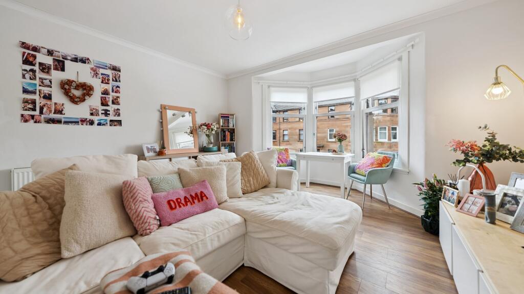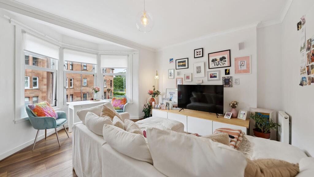 Set within a handsome red sandstone tenement in one of Glasgow’s most sought-after Southside locations, this immaculate two-bedroom first floor flat offers a superb blend of traditional charm and contemporary style.