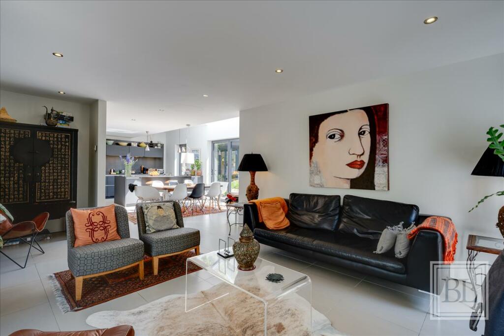 A stylish contemporary home with a delightful Mediterranean garden, located near to Connaught Avenue and the beach. Featuring an open-plan kitchen/living/dining space that opens onto two garden areas. Four bedrooms (one on the ground floor). Garden office. Chain free.