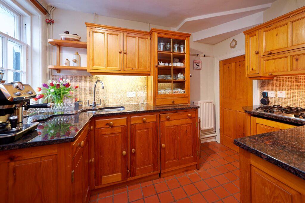 Based on the provided images, the property appears to be in good condition, showing a well-maintained interior with traditional features. The kitchen and bathrooms have been updated, and the overall presentation is clean and modern. There is also evidence of a garden, though the exact size is not specified.