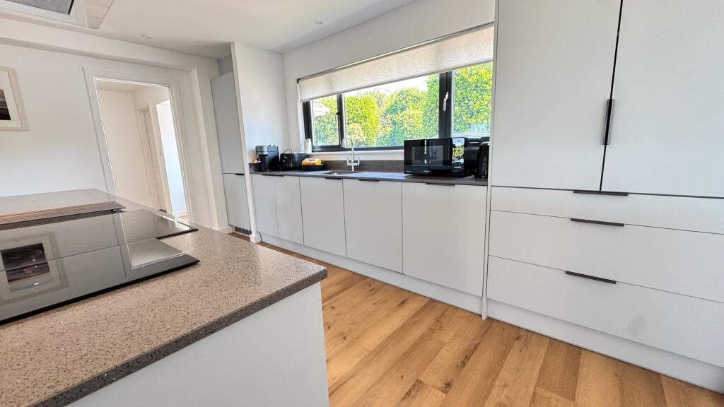 A wonderful location for this fully renovated 4 bedroom/4 bathroom detached residence with large garden, terrace & ample parking. Open plan living accommodation with modern bathroom & 2 en-suites. Large lawned rear garden. Easy walking distance to amenities and the beach.