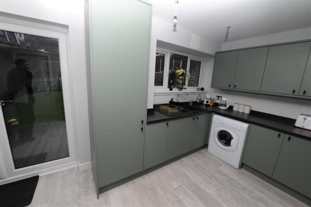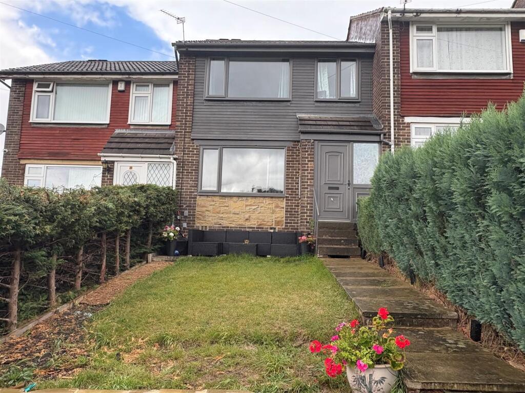 This is a three-bedroom terraced house in Shipley, West Yorkshire. The property benefits from a modern interior, including a recently updated kitchen and bathroom. It also features a garden with both lawn and decked areas. The property is located near several schools and transportation links, making it a convenient location for families and commuters. The asking price appears reasonable when compared to nearby properties.