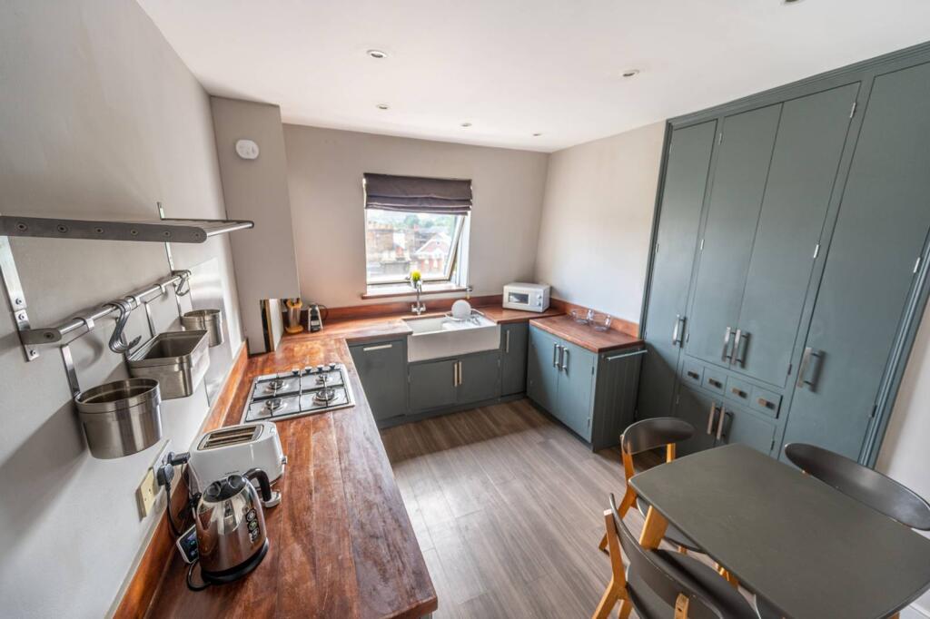 SHORT LET. Benefiting from a fantastic eat-in kitchen and great views this spacious split-level 2 bedroom apartment is well arranged on the 4th floor of a period conversion.