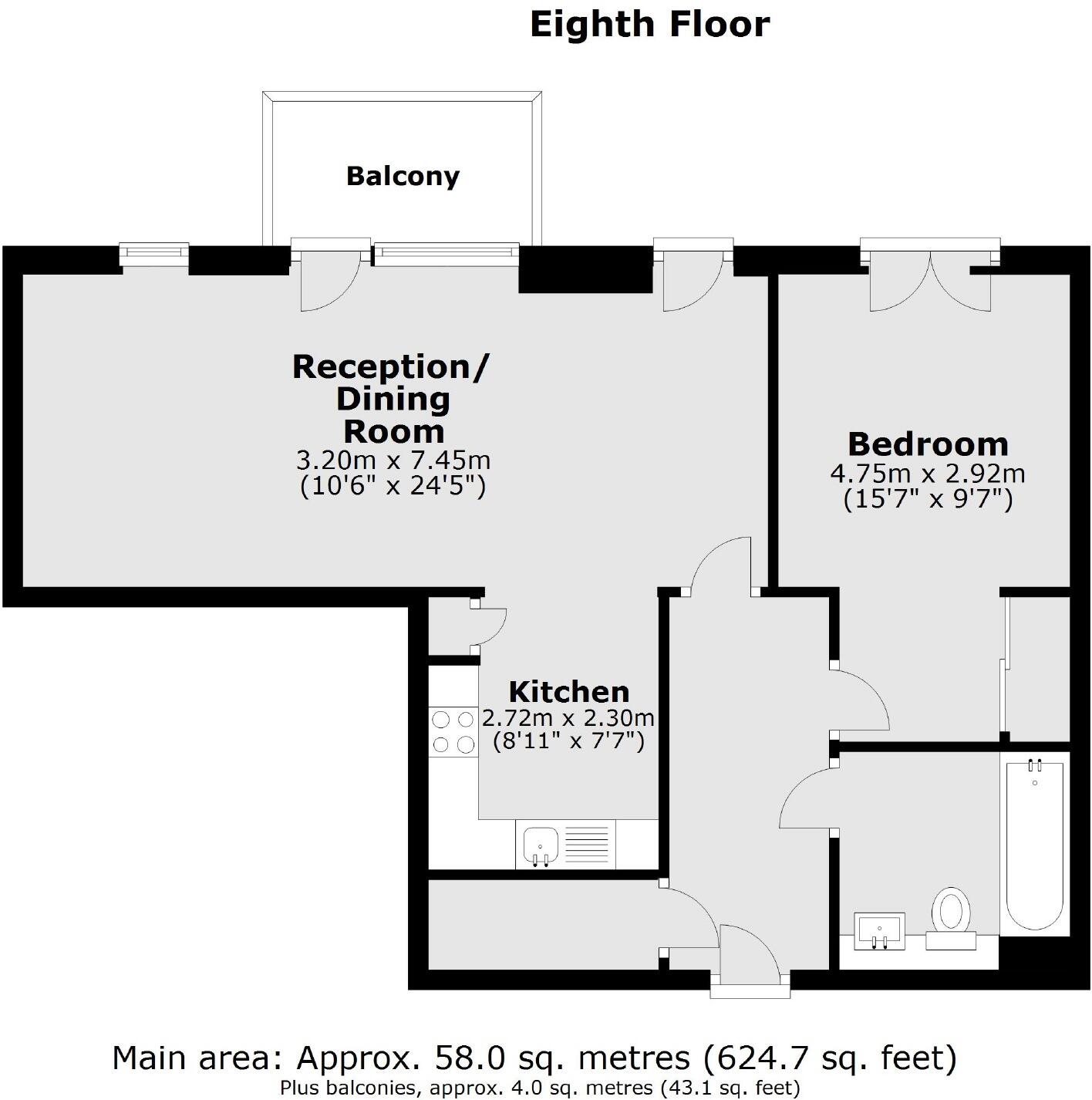 An exceptionally large one bedroom apartment on the eight floor of this dockside development. This modern apartment has an open plan reception room, a private balcony and residents facilities.