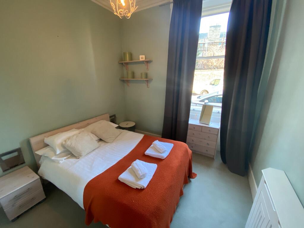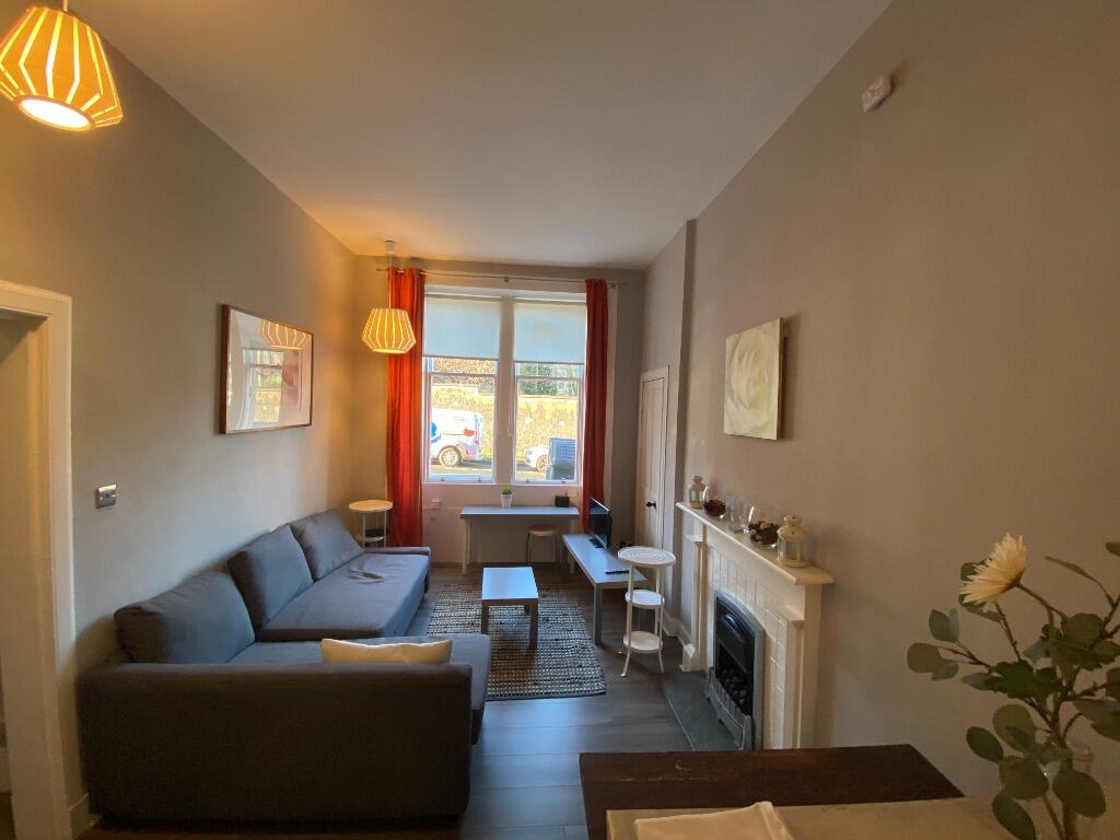 Beautifully presented and fully furnished one double bedroom ground floor flat in West End. Open plan lounge/kitchen, 1 double bedroom, study/box room and bathroom with over head shower. Gas central heating. Professional Let only, No Pets.