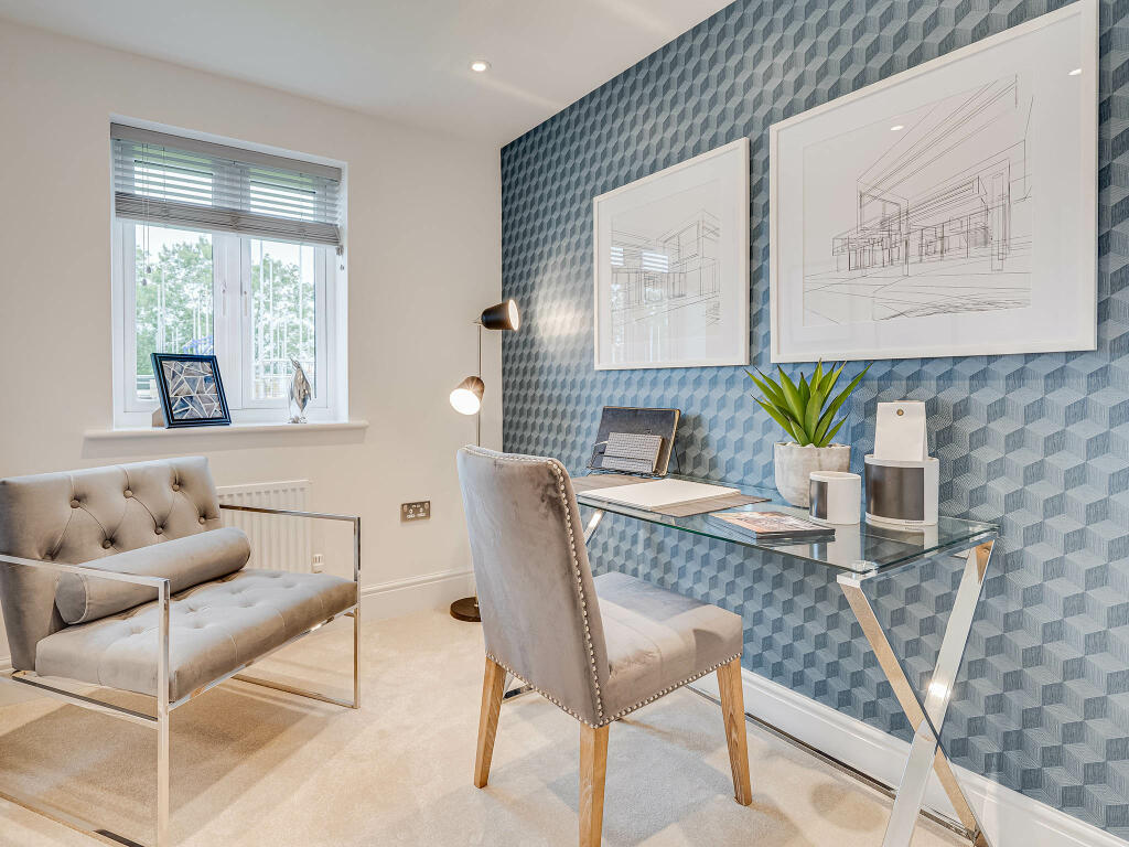 The Marylebone has a spacious open-plan kitchen/breakfast/family room with French doors opening onto the garden. This detached five-bedroom, two-bathroom family home has separate living and dining rooms, a utility room, a downstairs WC and built-in storage. Bedroom five could become a home office.