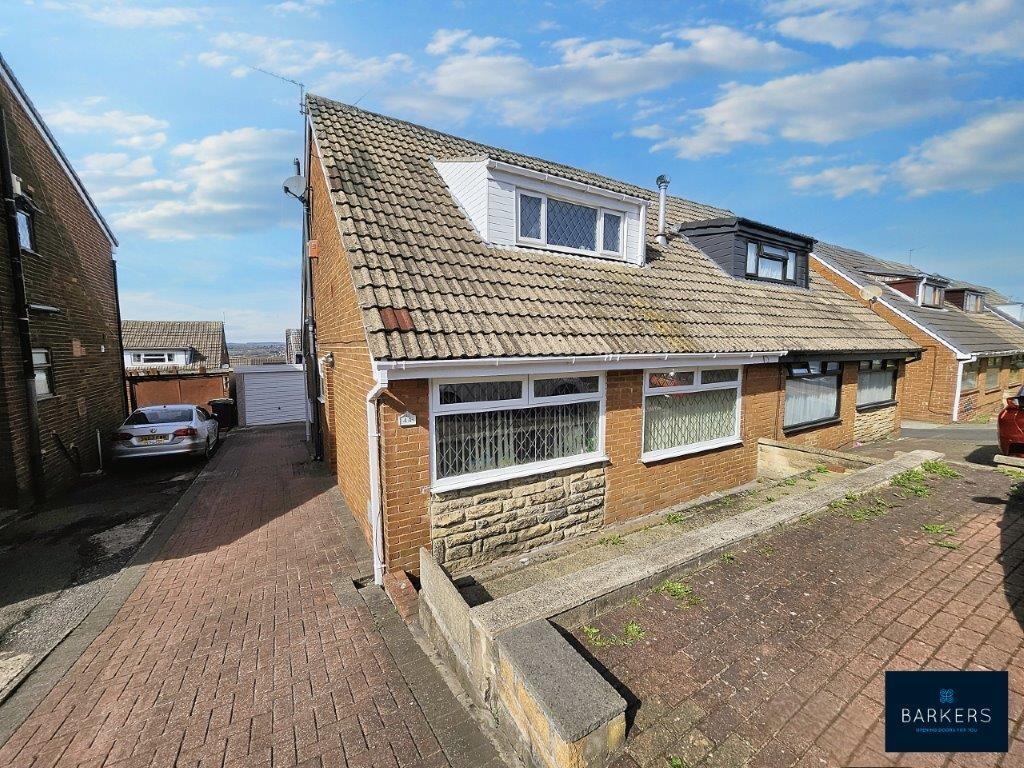 Semi detached dormer bungalow in popular location with far reaching views to rear. 2 reception rooms and conservatory, kitchen, three double bedrooms, shower room and en-suite. Low maintenance gardens and driveway.