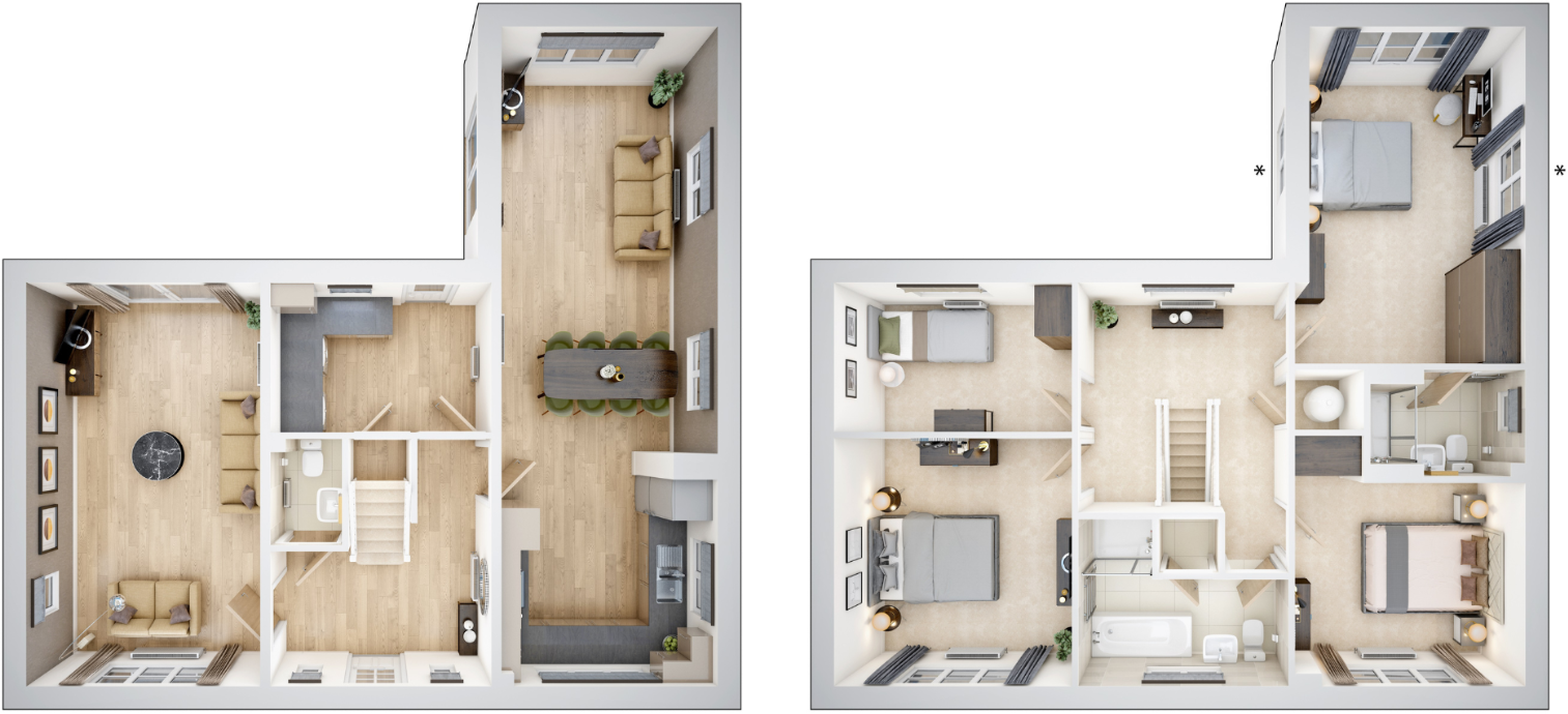 Home 76 - READY TO MOVE IN THIS SUMMER! SPACIOUS DETACHED HOME with SINGLE GARAGE, TWO PARKING SPACES. LARGE OPEN-PLAN KITCHEN/DINER, SEPARATE UTILITY & WC, and a GENEROUS DUAL-ASPECT LOUNGE with FRENCH DOORS. EN-SUITE to BEDROOM ONE, TWO FURTHER DOUBLES, FLEXIBLE SINGLE & LARGE FAMILY BATHROOM.