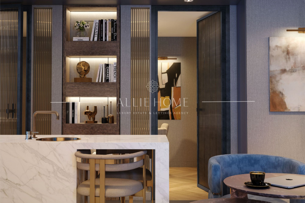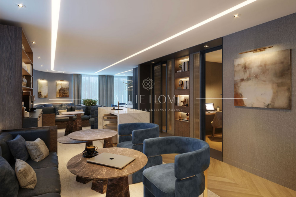 Stylish 2-bed, 2-bath riverside apartment in Chelsea. High-end finishes, modern kitchen, private balcony. Luxury amenities, great transport links, completion 2024.