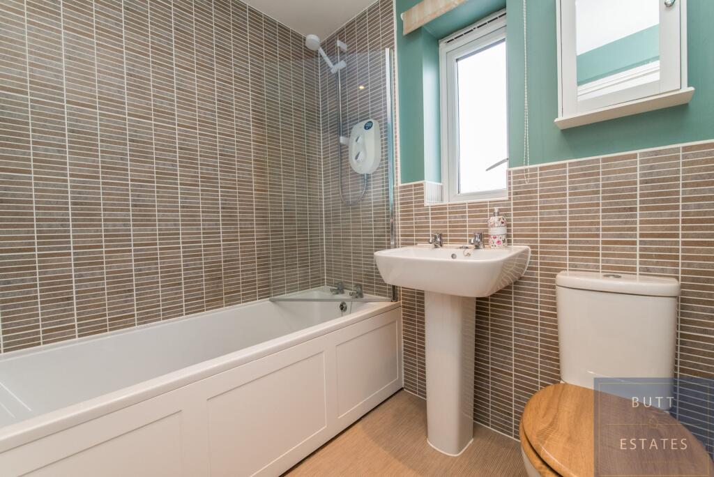 This is a three-bedroom semi-detached house located on Melrose Avenue in Pinhoe, Exeter. The property features two bathrooms and gardens to the front and rear. The house is conveniently located near schools and transportation links, including Digby And Sowton and Pinhoe train stations. The interior appears to be in generally good condition, although some rooms could benefit from modernisation. The asking price of £350,000 seems reasonable given the location and property type.