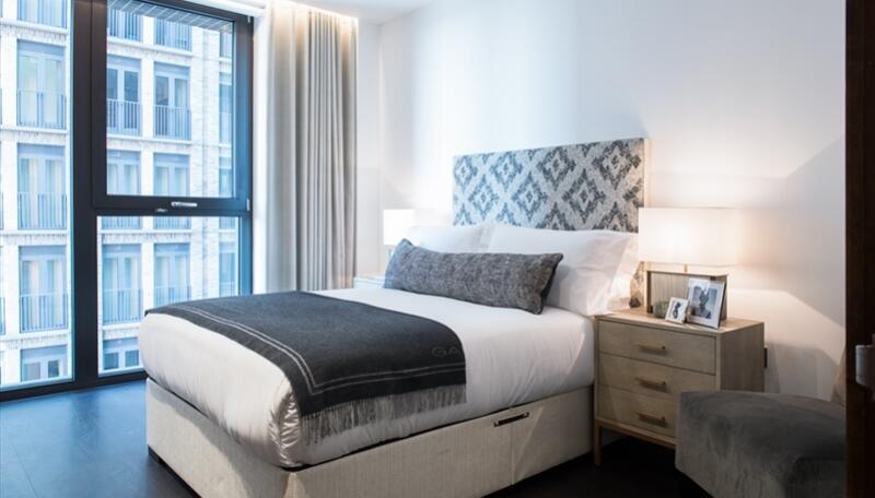 An impressive interior designed 864 Sq Ft two-bedroom, two-bathroom apartment located in Thornes House forming part of The Residence Collection in Nine Elms on London's iconic South Bank.
