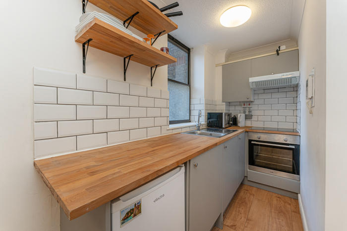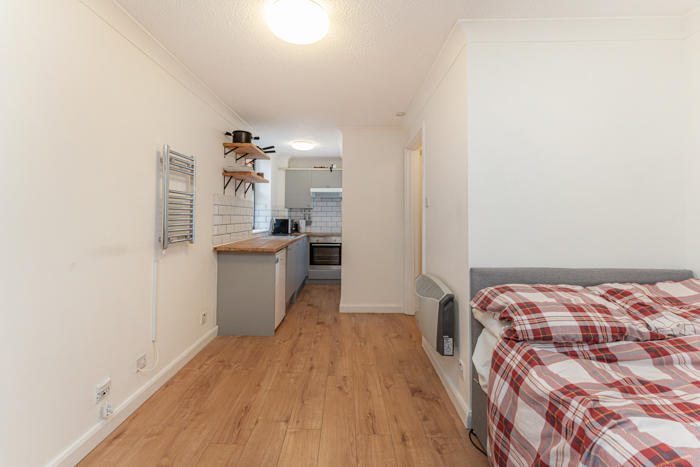 Short Let - a studio apartment situated on the ground floor of Aldersgate Court, a block on the quiet Bartholomew Close, close to Smithfield, Barbican and the Elizabeth line at Farringdon