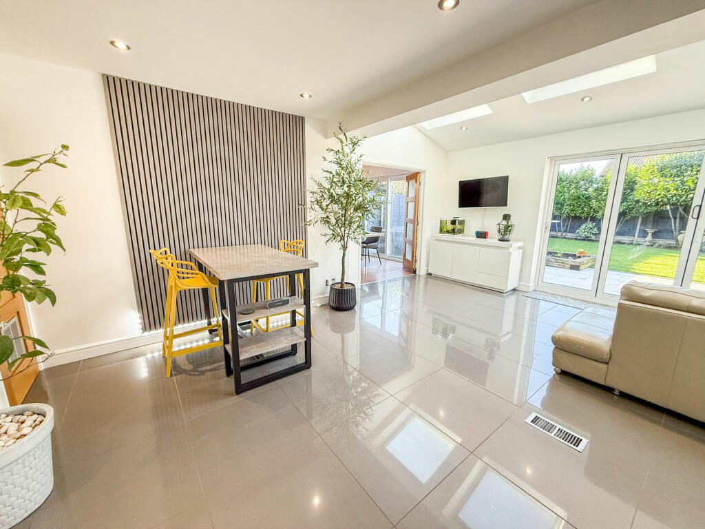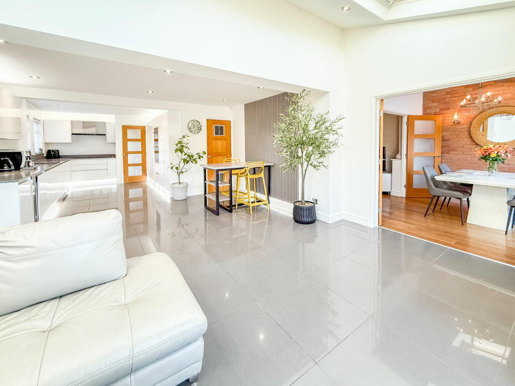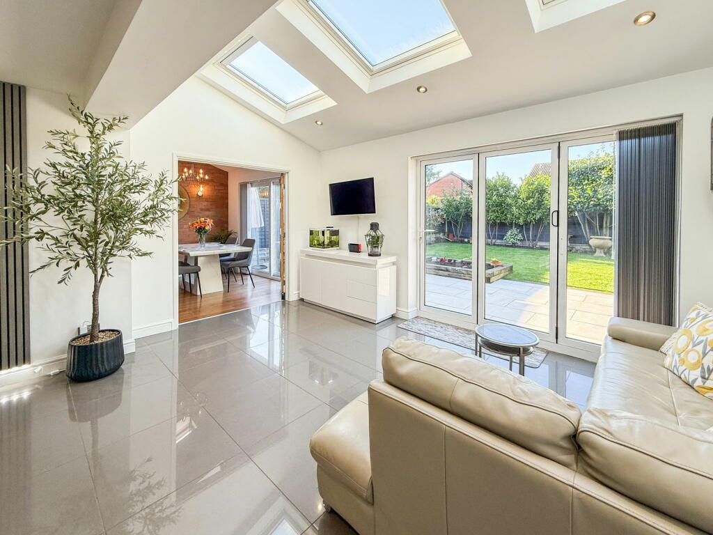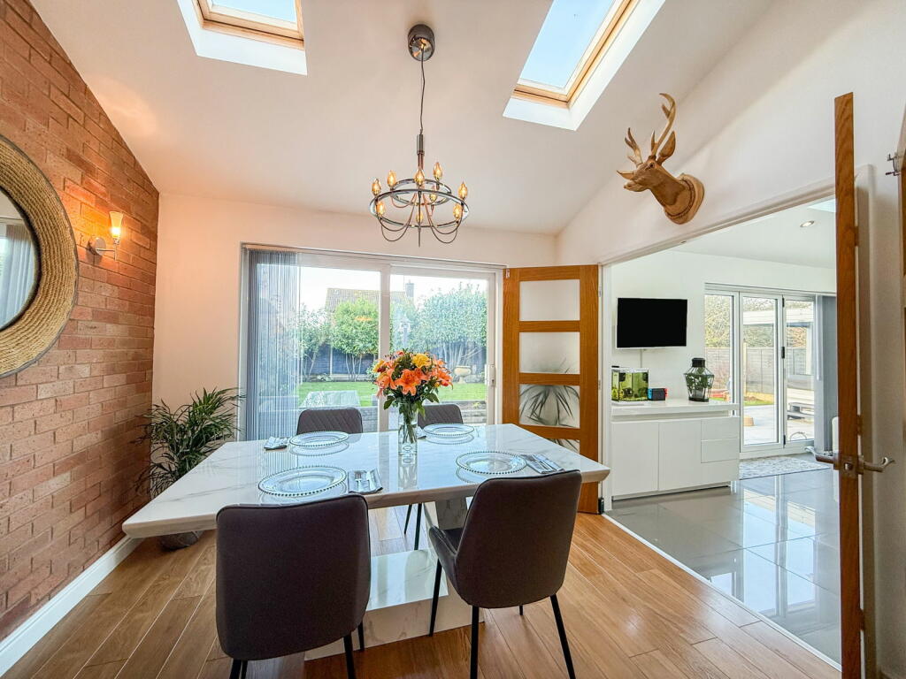 This four-bedroom detached house in Whitestone, Nuneaton is presented in excellent condition, benefitting from a recent renovation or high-quality upgrade. The property boasts a modern, open-plan kitchen-diner extension with high-end appliances and finishes. The living areas are bright and spacious, enhanced by new flooring and stylish decor. The inclusion of a wood-burning stove adds to the home’s appeal and creates a cozy ambience.