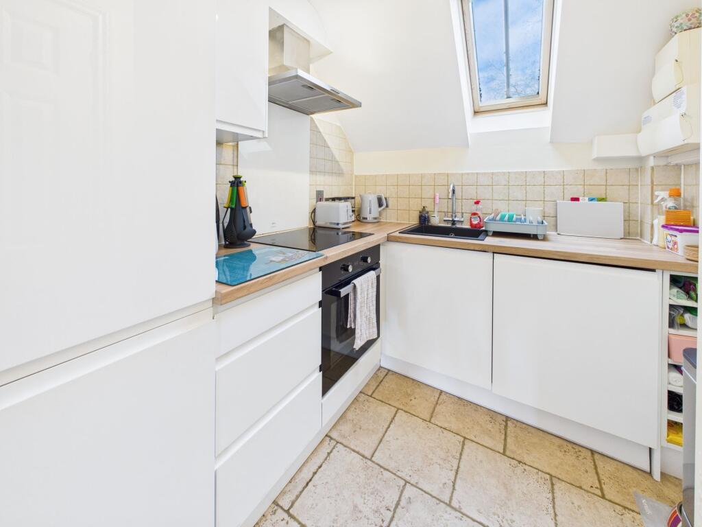 This is a one-bedroom flat located in Milton-under-Wychwood, Oxfordshire. The property appears to be in good condition, with modern interiors. It benefits from being in a desirable village location with access to local amenities and transport links. While the price per square foot is above the local average, the overall price seems reasonable considering the condition and location. The lack of private outdoor space is a typical limitation for a flat of this type.