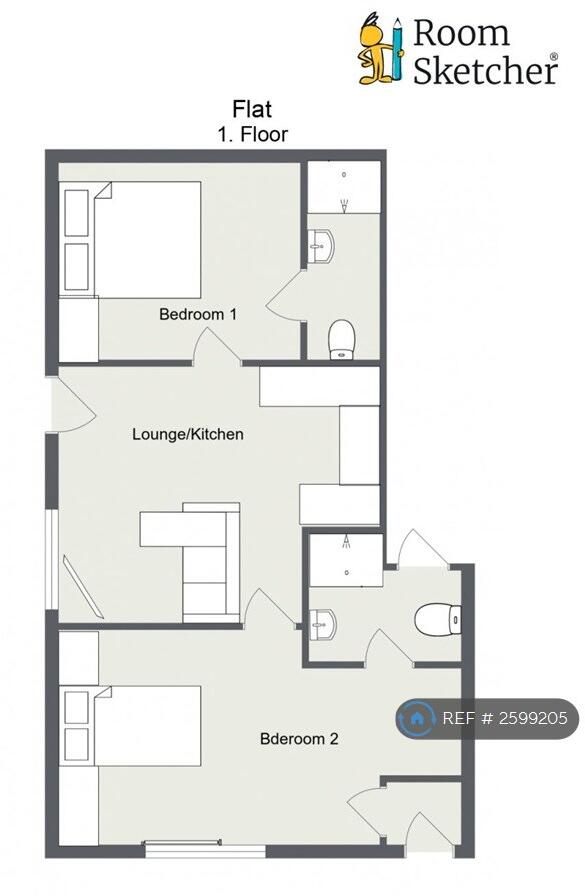 Please find this recently refurbished ground floor flat. There are two bedrooms both with en-suite bathrooms. In addition to the new kitchen there is a washer dryer. This is a cosy flat with a go... ** Property Reference: 2599205 **