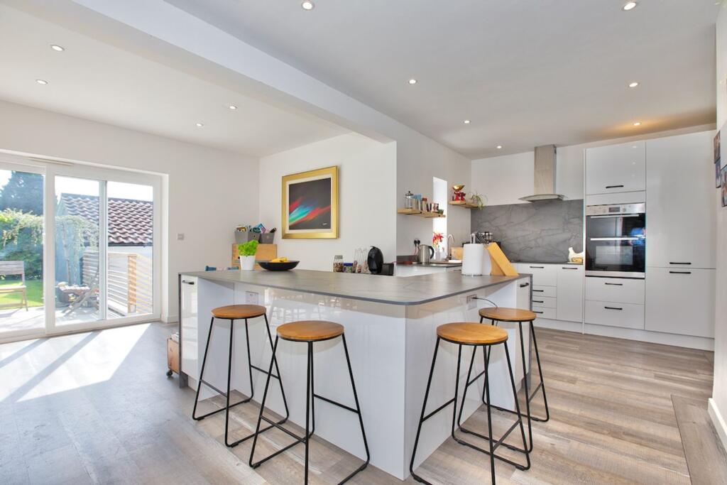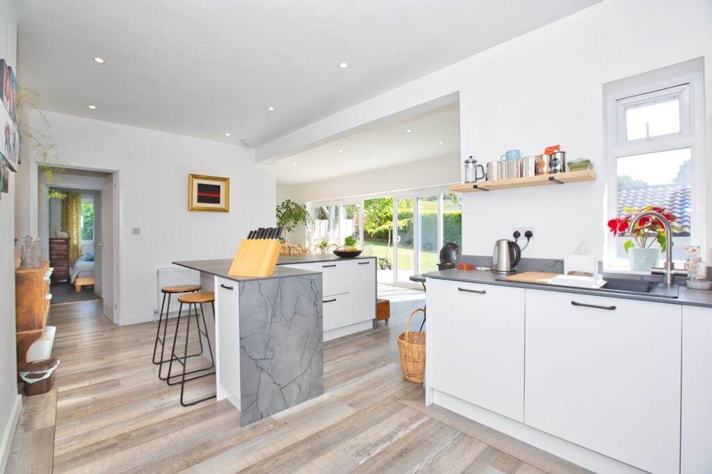This property is a detached bungalow located in Bleadon, North Somerset. The images show a well-maintained property with a modern kitchen and bathrooms. The property also benefits from a good-sized garden.